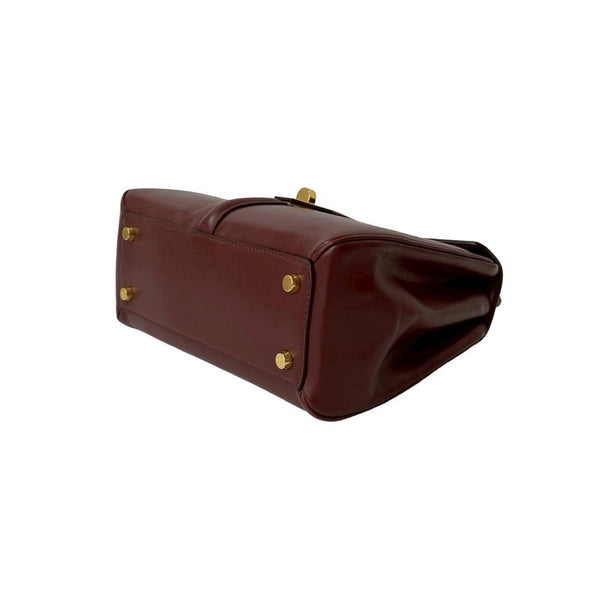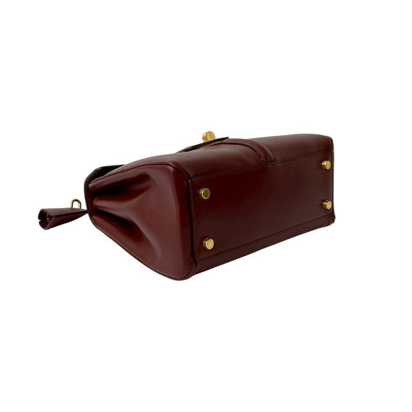 CELINE 16 Seize Small Logo Turnlock Hardware Leather 2-Way Handbag/Shoulder Bag Bordeaux 37907