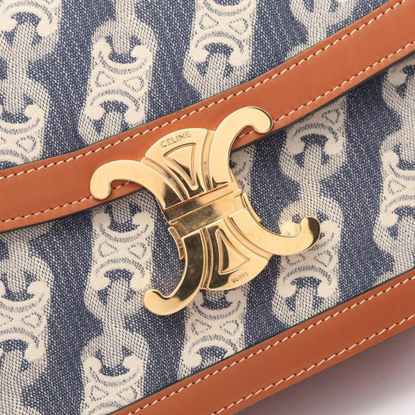 Celine Classic Triomphe Shoulder Bag, Denim and Leather, Women's, Navy Brown, 191242