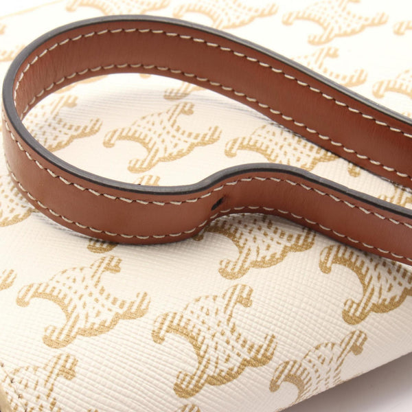 CELINE Claude Triomphe Shoulder Bag Coated Canvas Leather Women\'s White Brown 194142