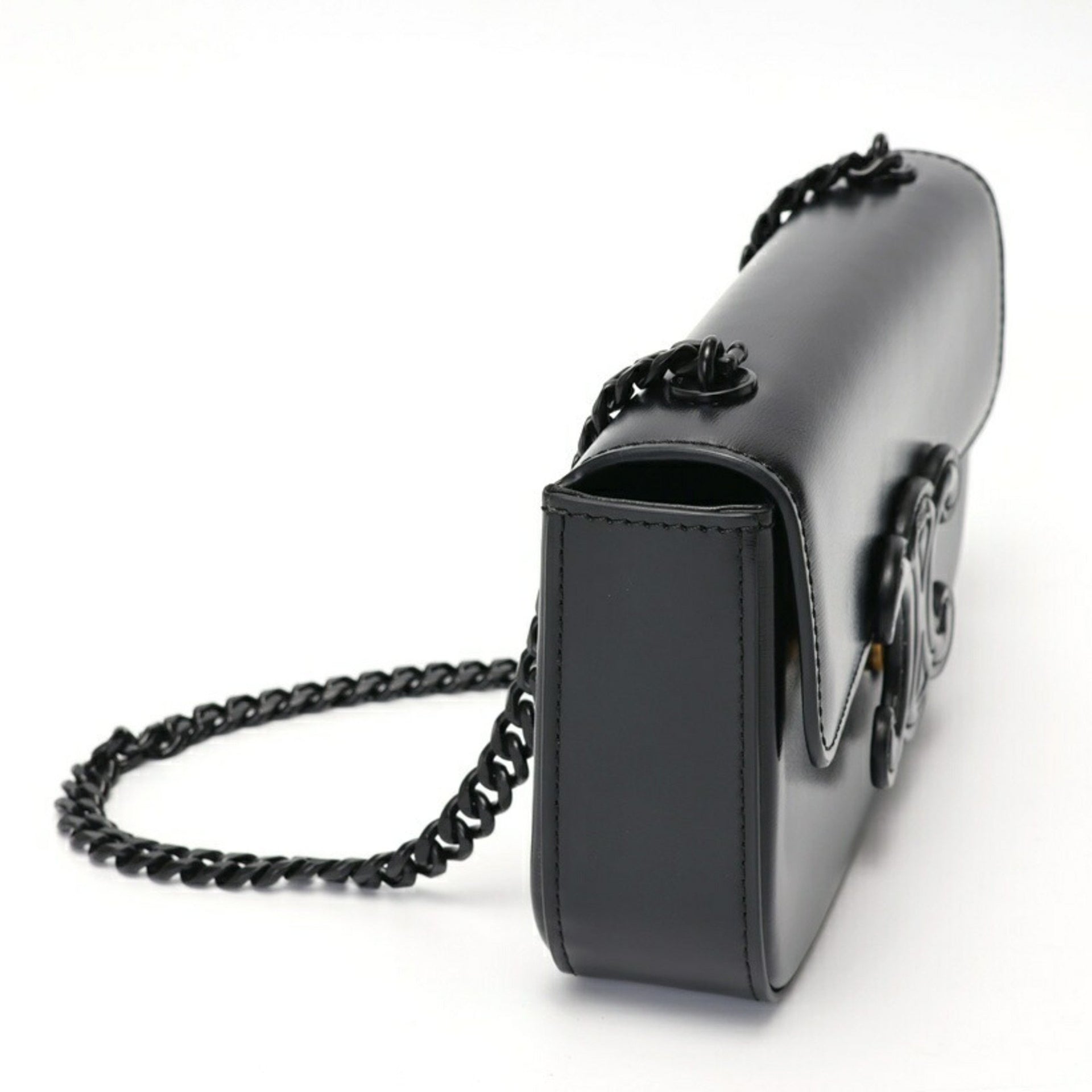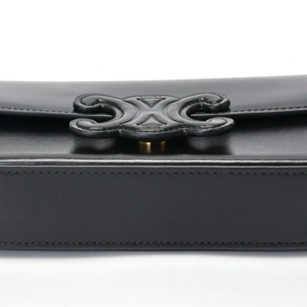 CELINE Cuir Triomphe Chain Shoulder Bag 19924 Shiny Calfskin Black S-157942