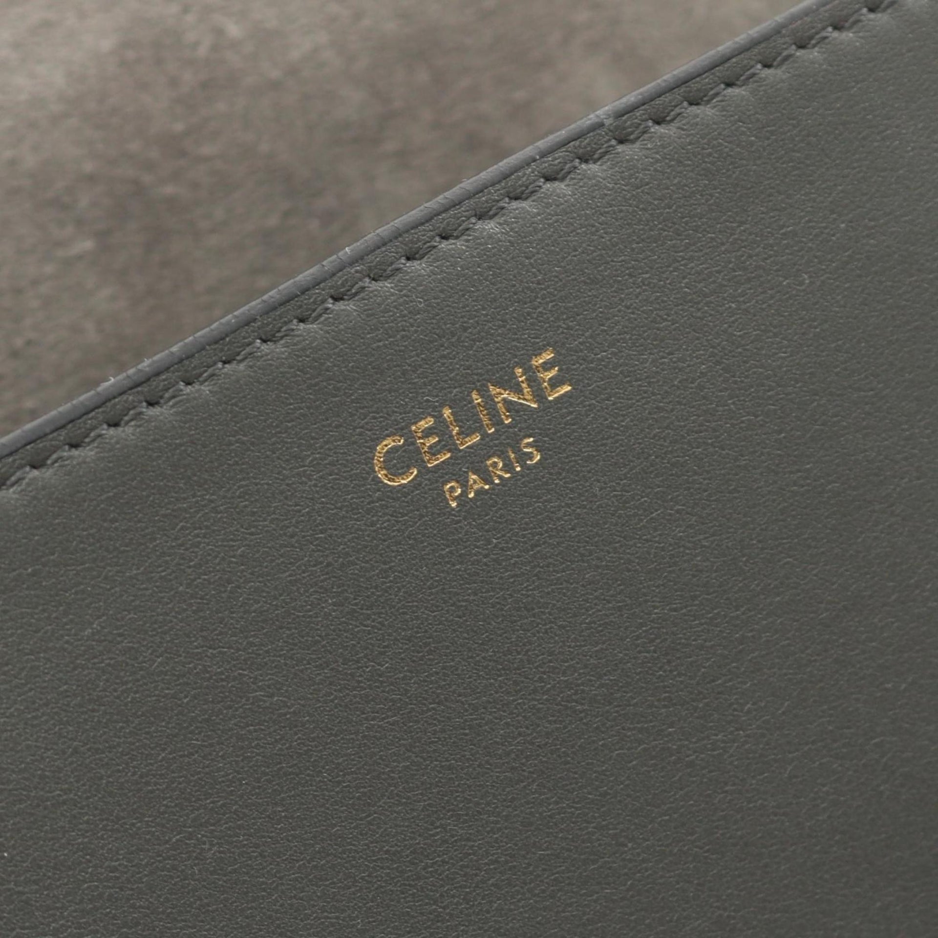 CELINE Folco Cuir Triomphe Shoulder Bag Leather Women\'s Grey 19826