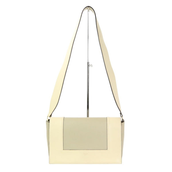 CELINE Frame Medium Calf Leather Shoulder Bag 180263 Ivory Grey Women\'s