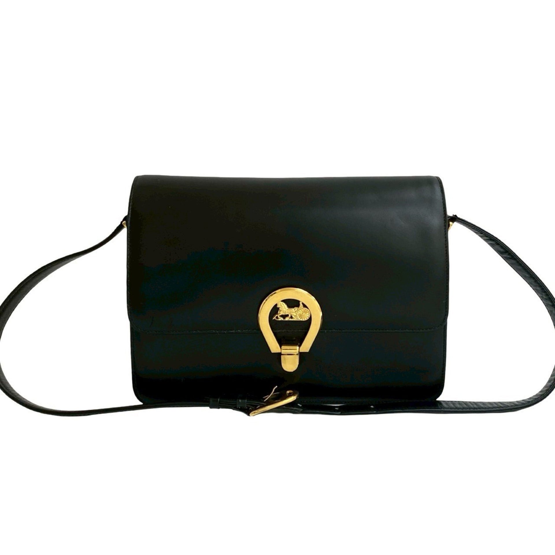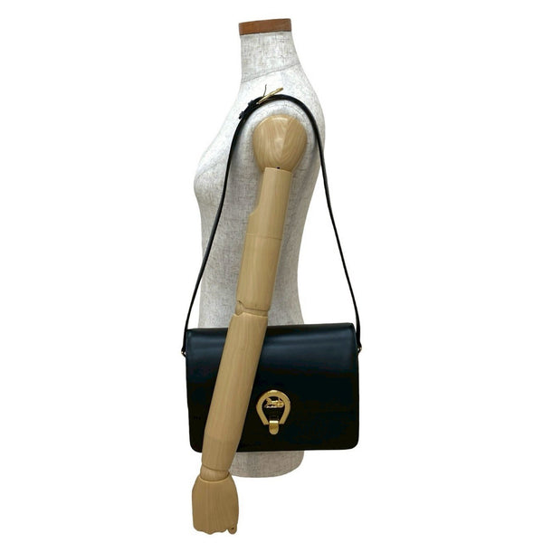 CELINE Horseshoe Leather Semi-Shoulder Bag in Black (29577)
