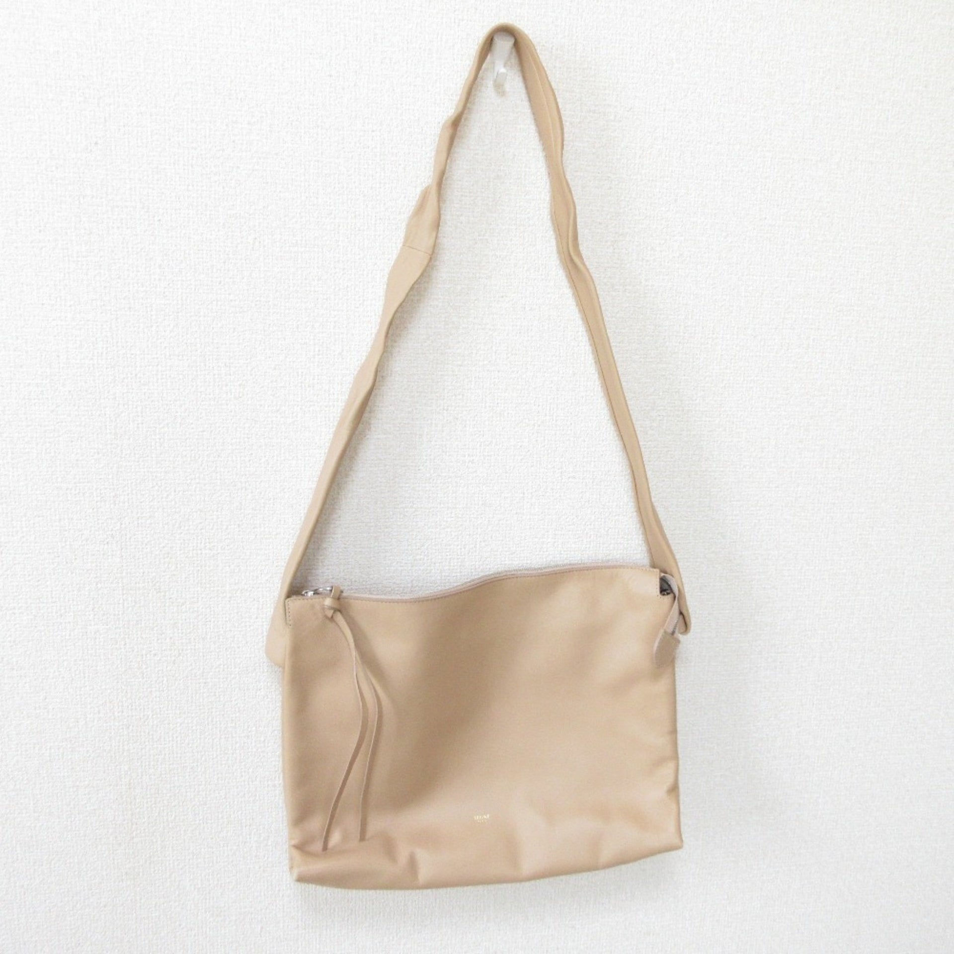 CELINE Leather Shoulder Bag Pink Beige Women\'s