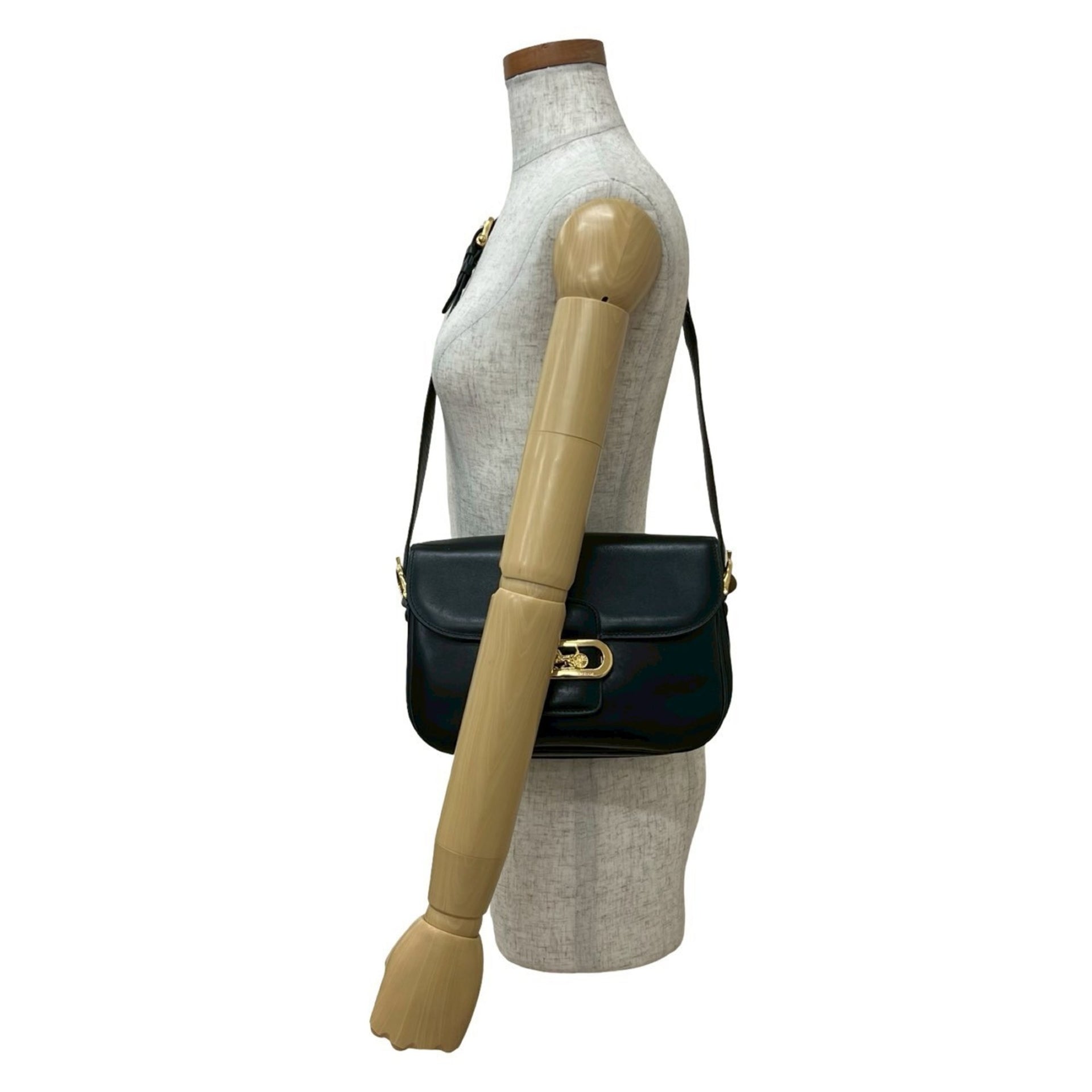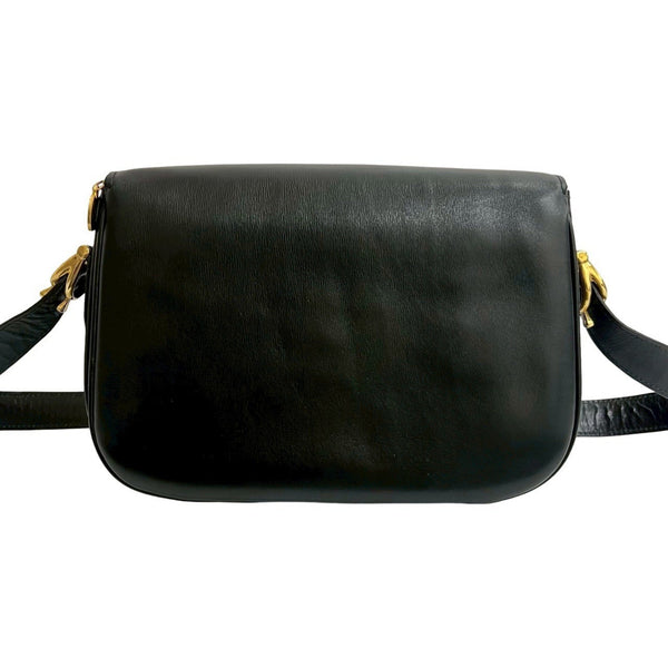 CELINE Logo Carriage Calf Leather Shoulder Bag Pochette Black 23612