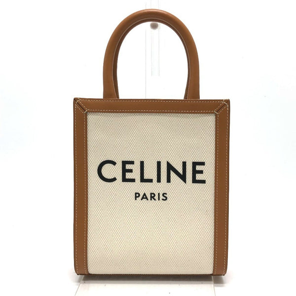 CELINE Logo Vertical Cabas Mini 2-Way Shoulder Bag in Canvas/Leather, Beige