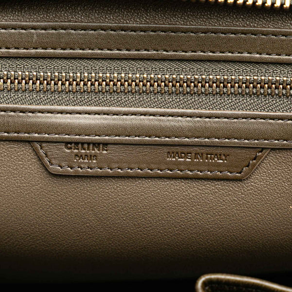 Celine Luggage Micro Shopper Handbag Tote Bag Khaki Green Leather Women\'s CELINE
