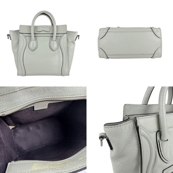Celine Luggage Nano Shopper Handbag Shoulder Bag in Light Pale Green Leather (Z6860)