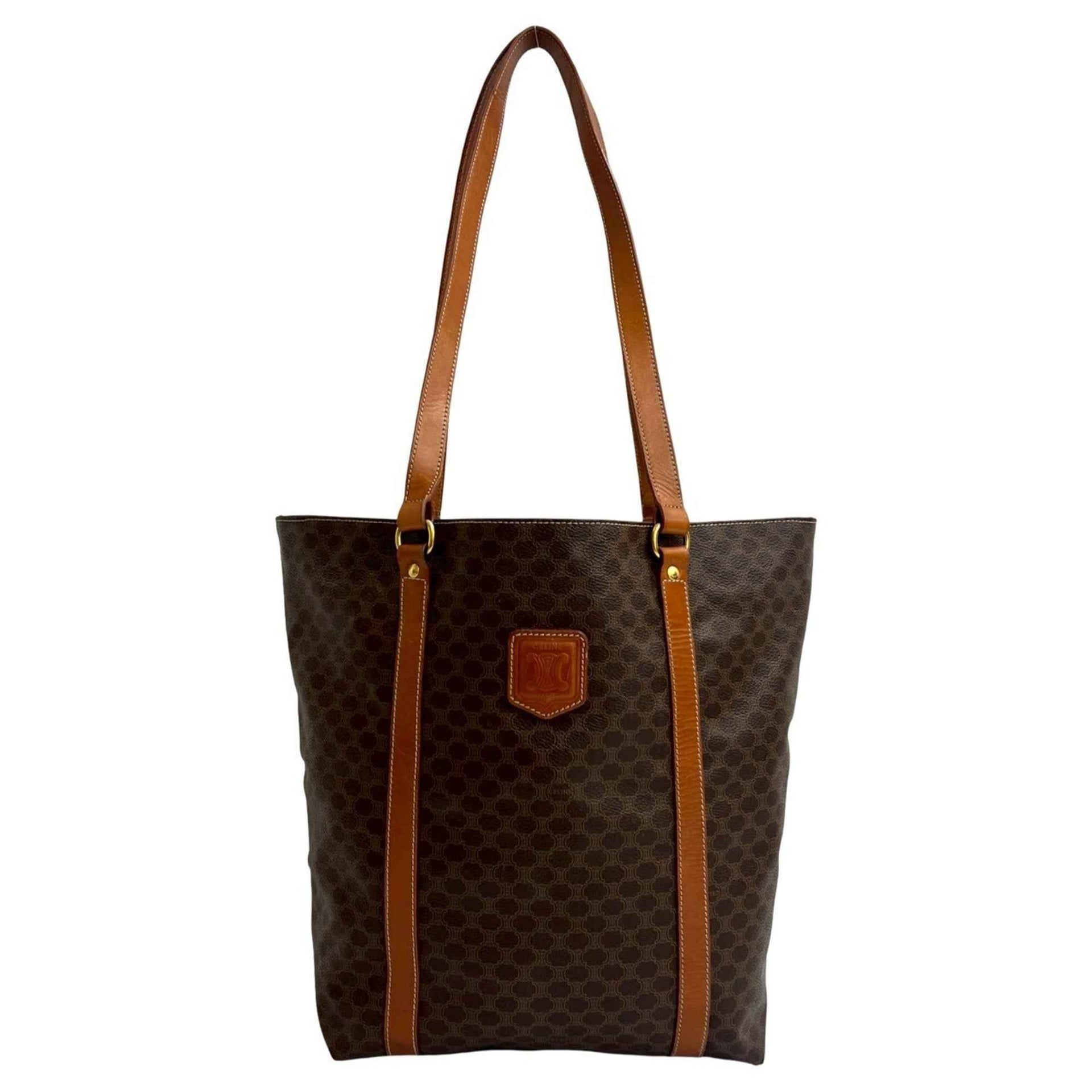 CELINE Macadam Blason Triomphe Logo Leather Tote Bag, Brown (g95-9)