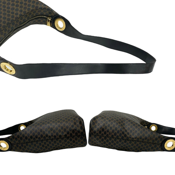 CELINE Macadam Blason Triomphe Pattern Circle Logo Hardware Leather Shoulder Bag Black k95-7