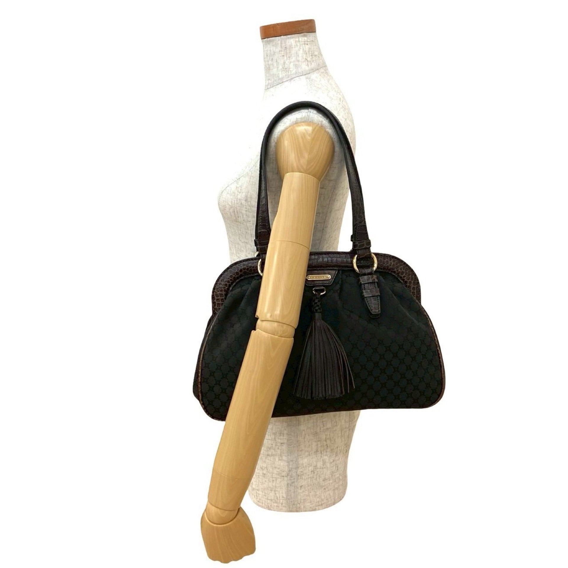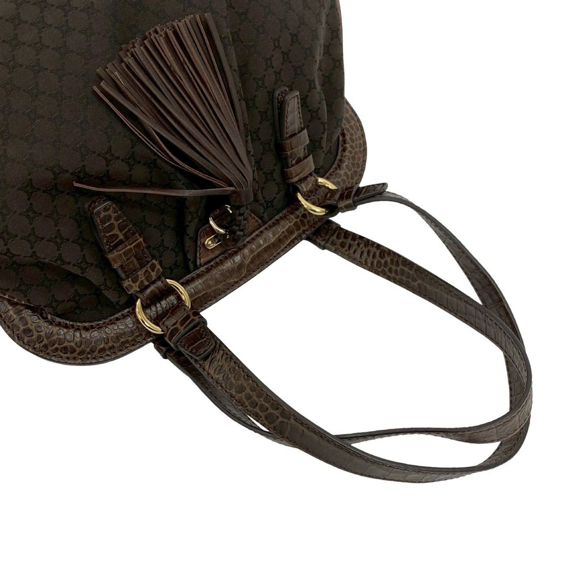 CELINE Macadam Blason Triomphe Print Canvas and Leather Tote Bag with Tassel, Brown, 39400