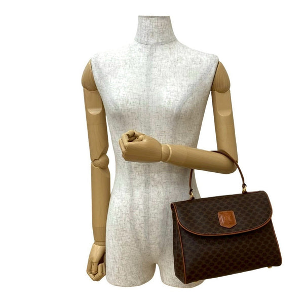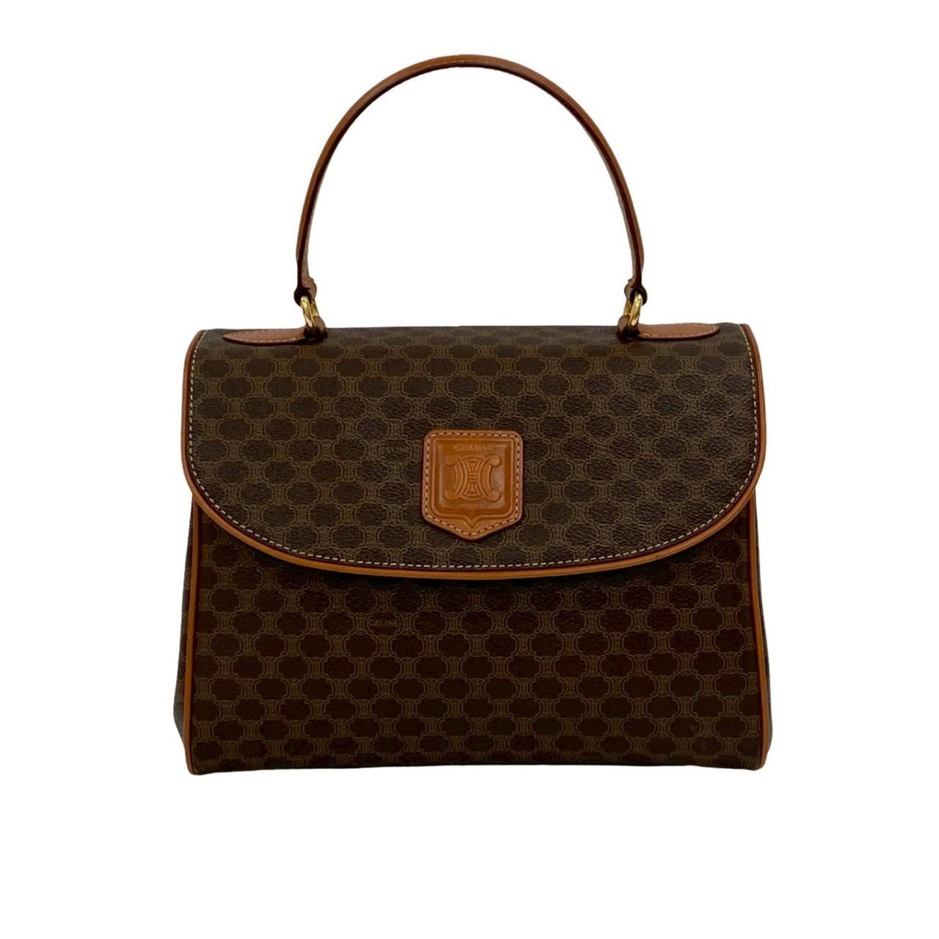 CELINE Macadam Blason with Triomphe Logo and Genuine Leather Handbag/Tote Bag, Brown, 22175