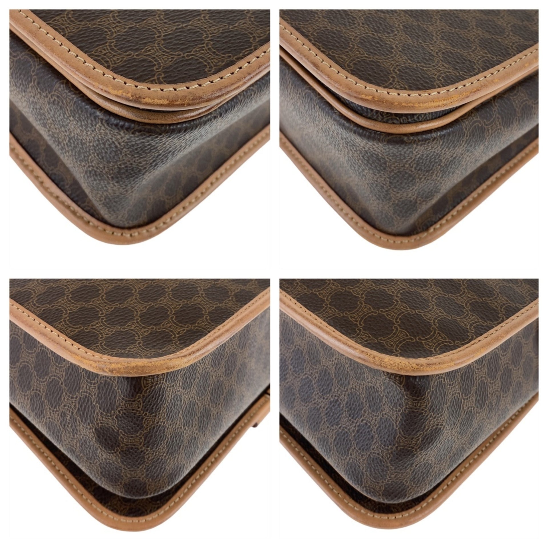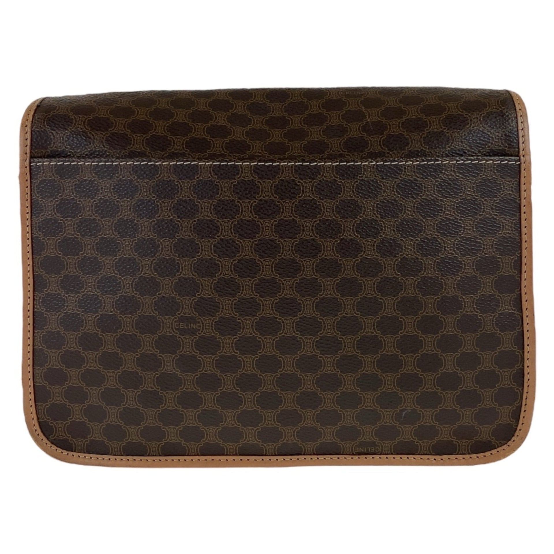 CELINE Macadam Brown Gold Hardware Leather Crossbody Shoulder Bag for Women