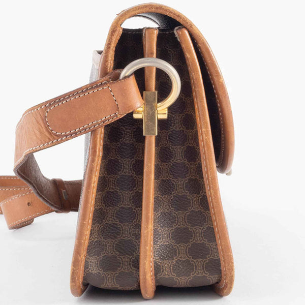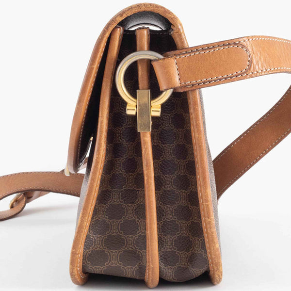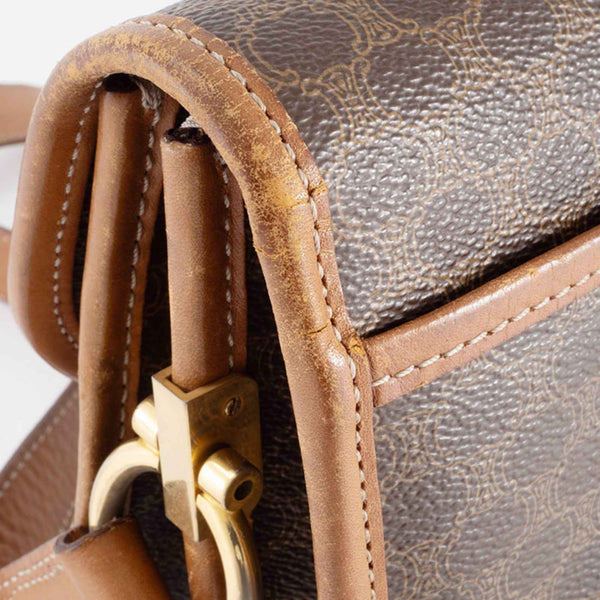 Celine Macadam Flap Shoulder Bag M08, Brown PVC Leather, Women\'s, Old Style, Two-Compartment, CELINE