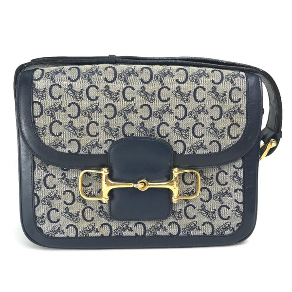 CELINE Old Celine C Carriage Monogram Vintage Shoulder Bag in Canvas/Leather, Women\'s, Gray and Navy