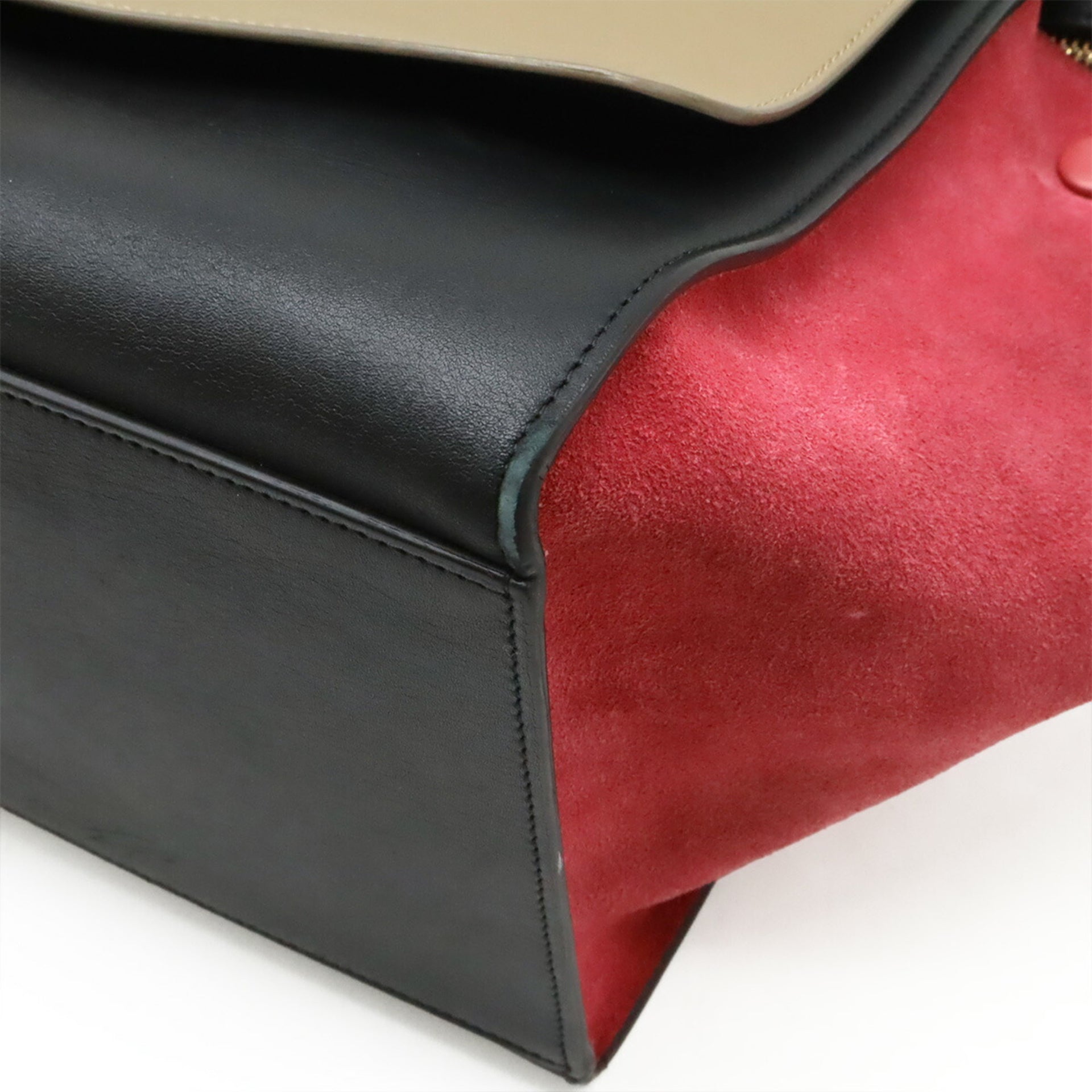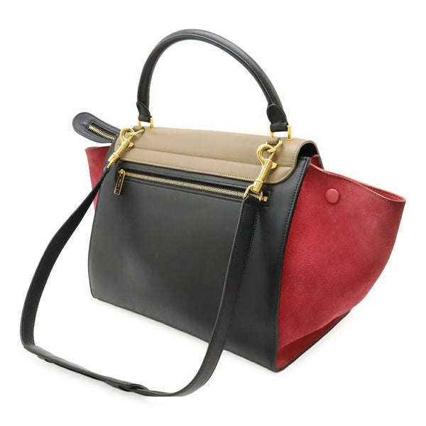 CELINE Trapeze Handbag Shoulder Bag Leather Suede Beige Black Bordeaux