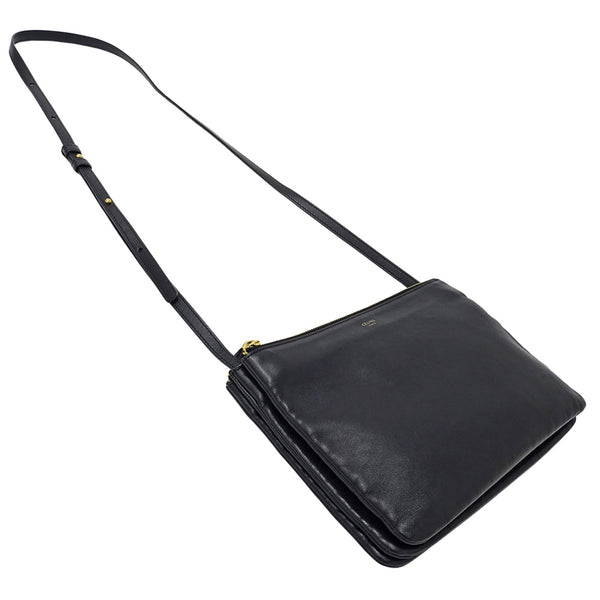 Celine Trio Large Leather Shoulder Bag, Black, Women\'s, Crossbody
