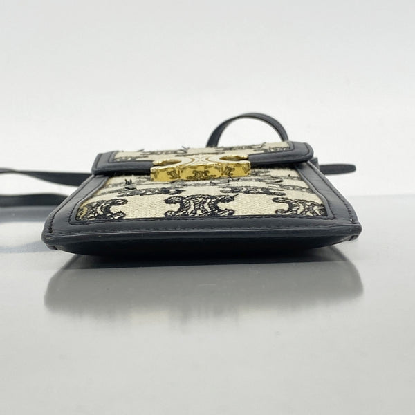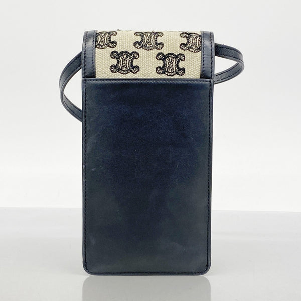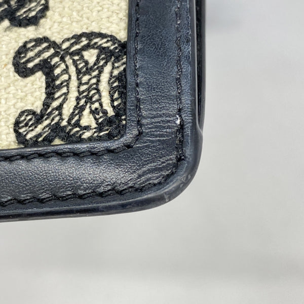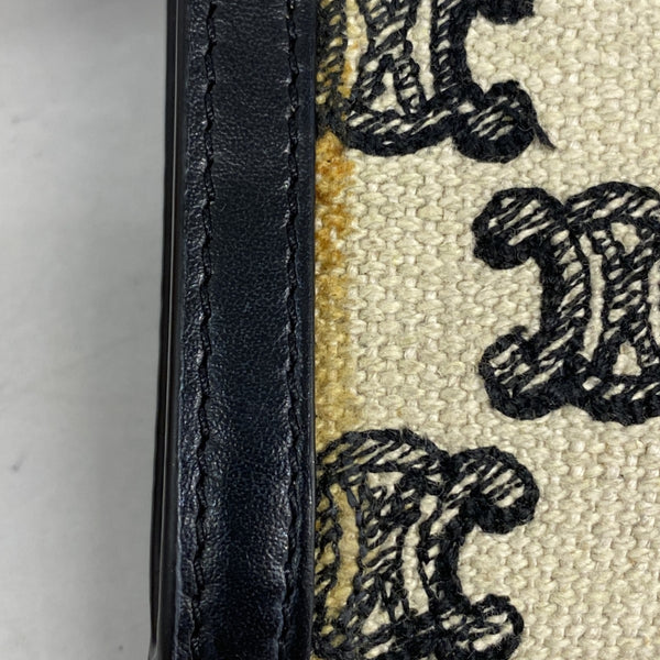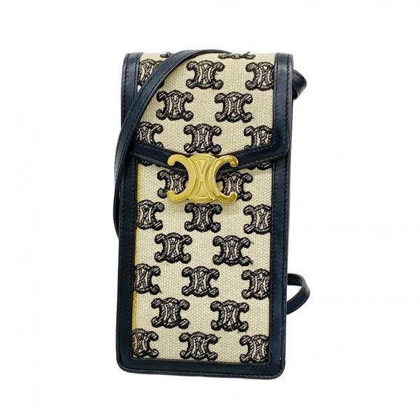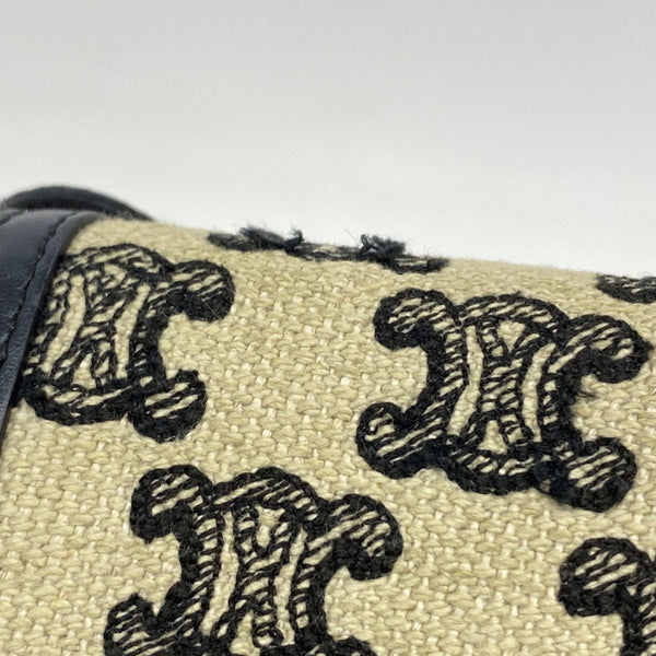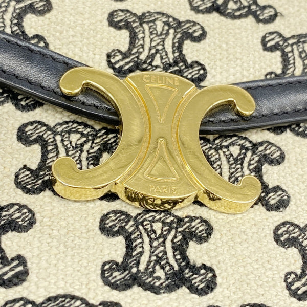 Celine Triomphe Canvas Shoulder Bag Black Beige Women\'s
