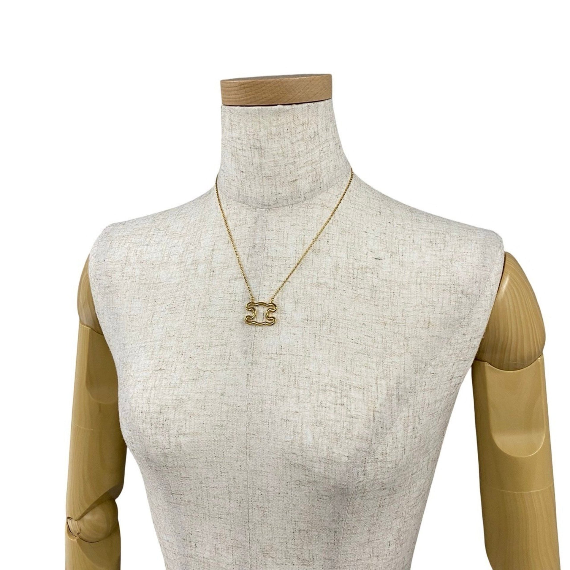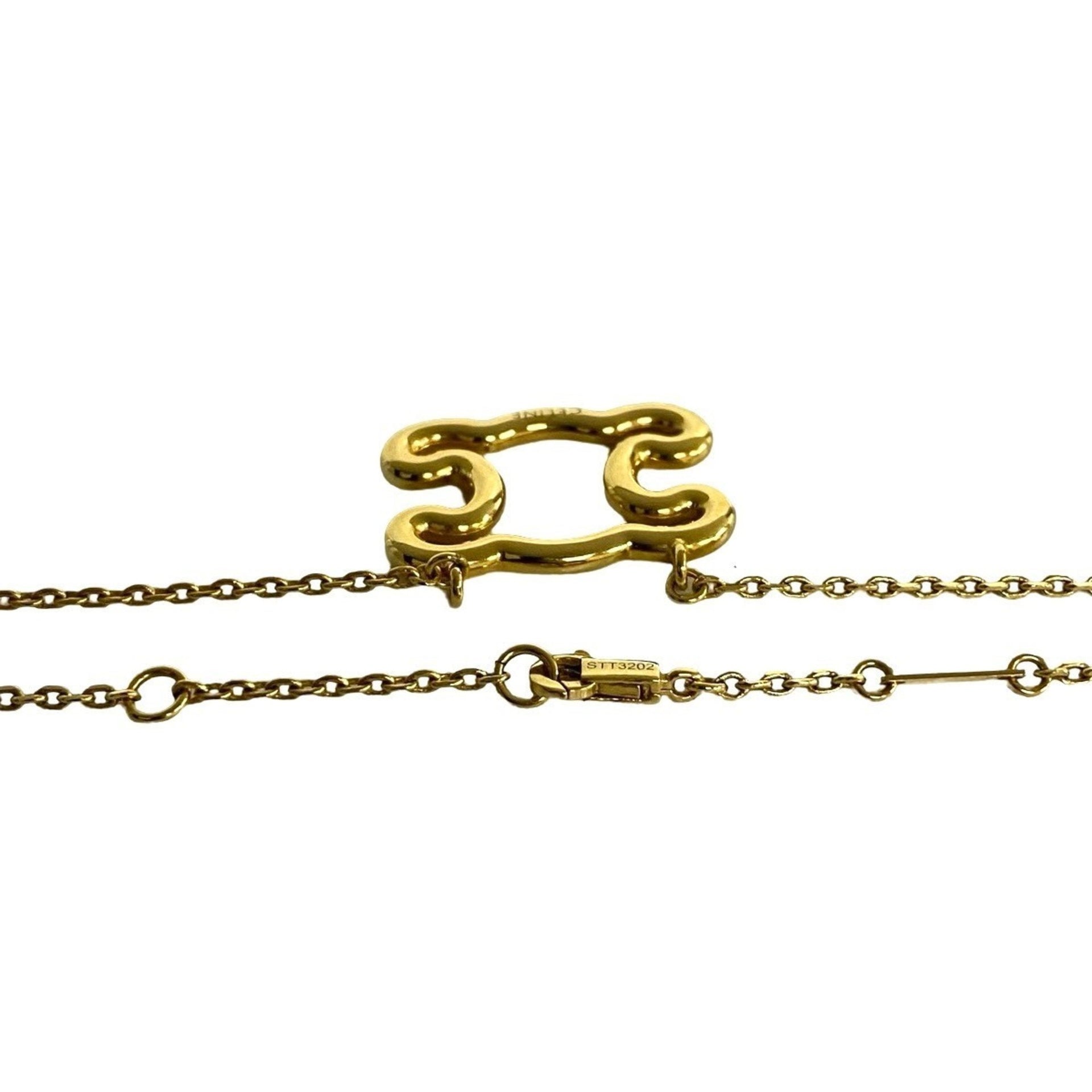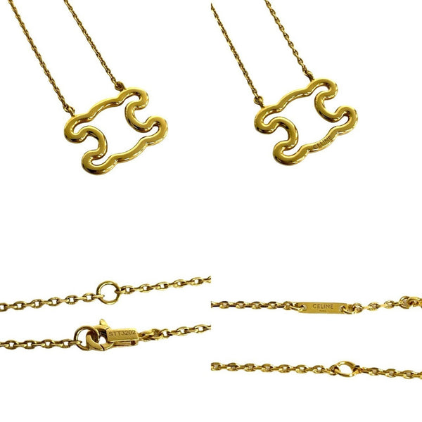 CELINE Triomphe Logo Motif Frame Necklace Pendant Choker Accessory Gold 44139