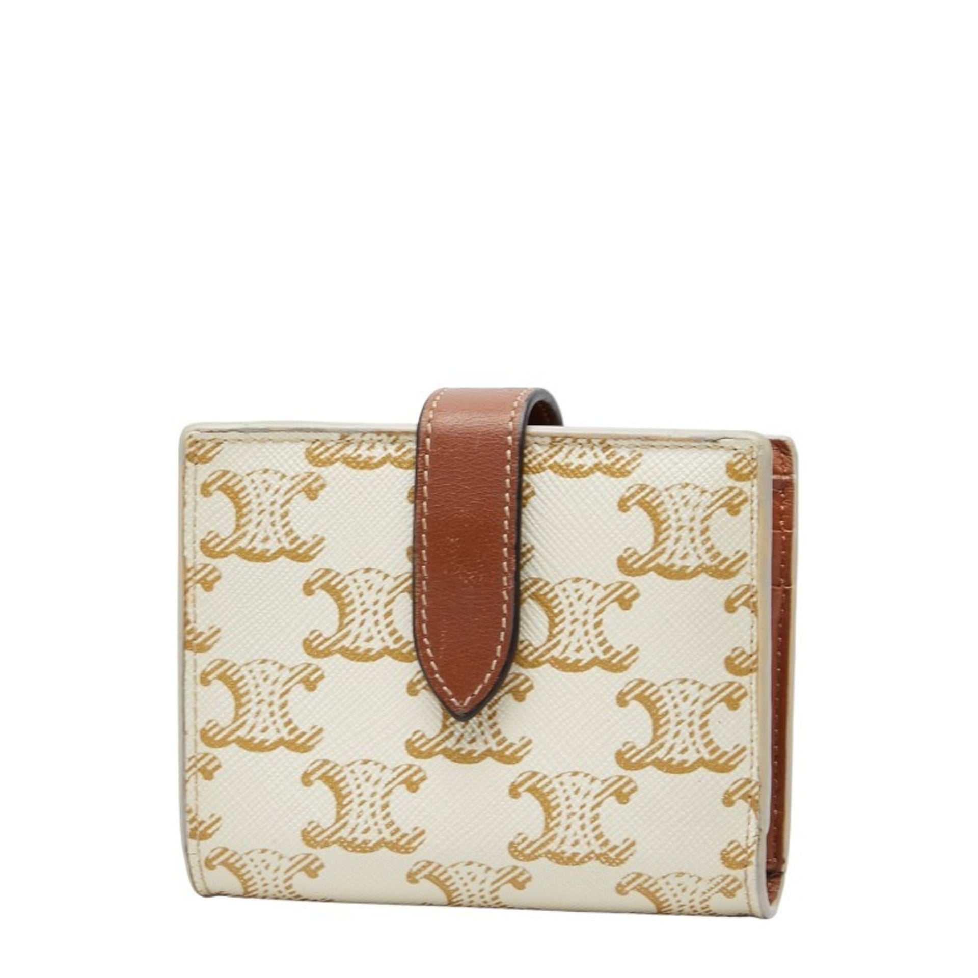 Celine Triomphe Small Strap Wallet, Bifold Ivory/Brown Leather, Women\'s, CELINE
