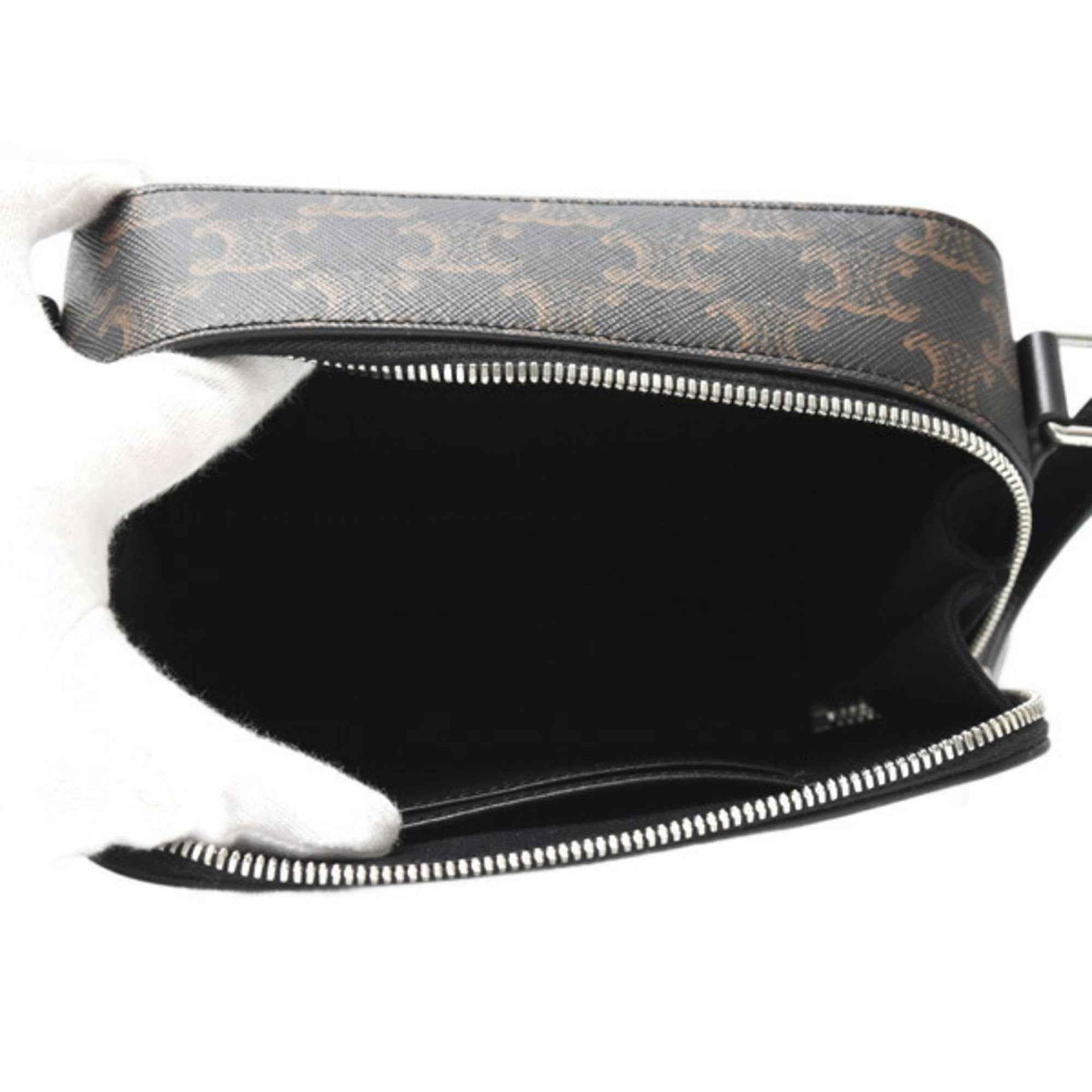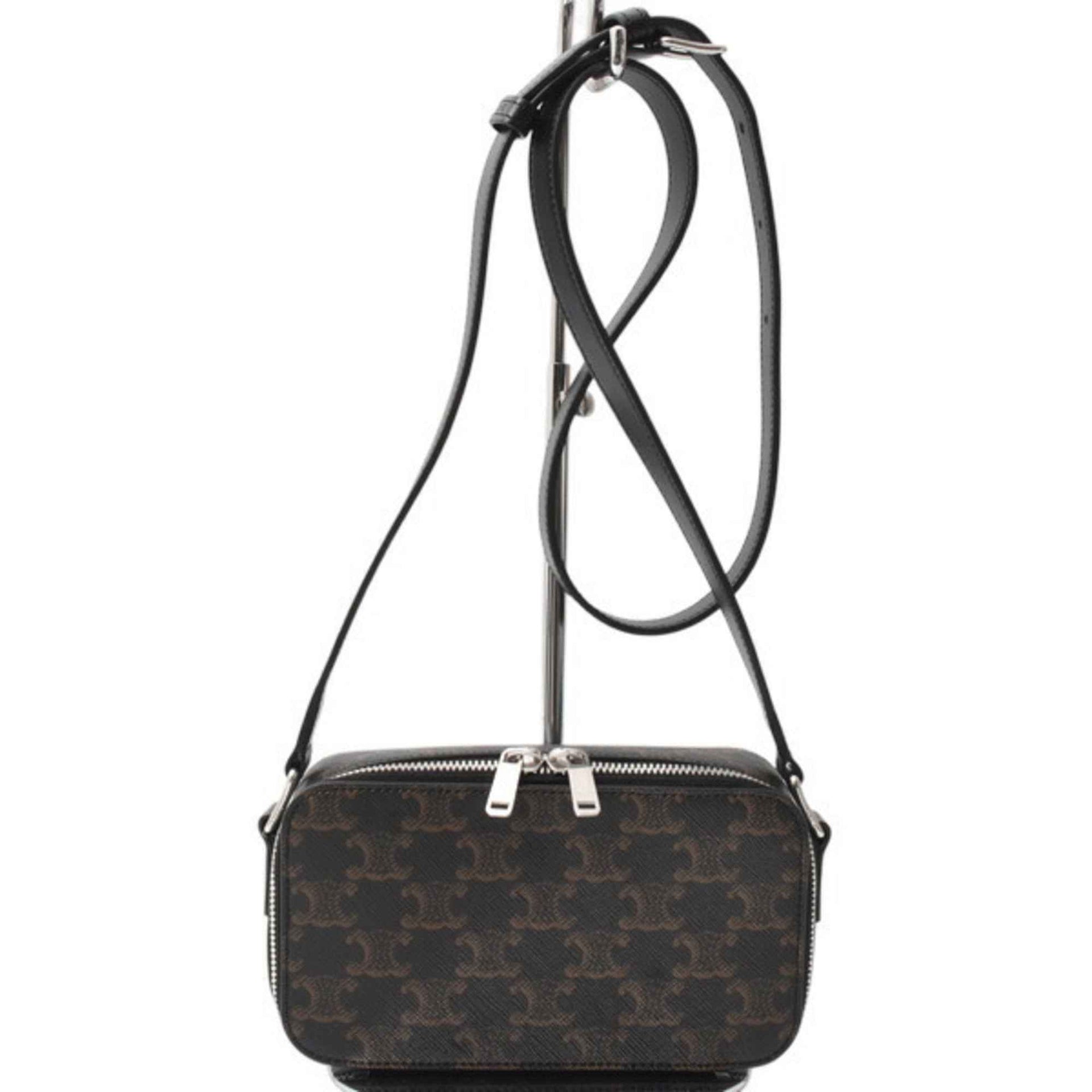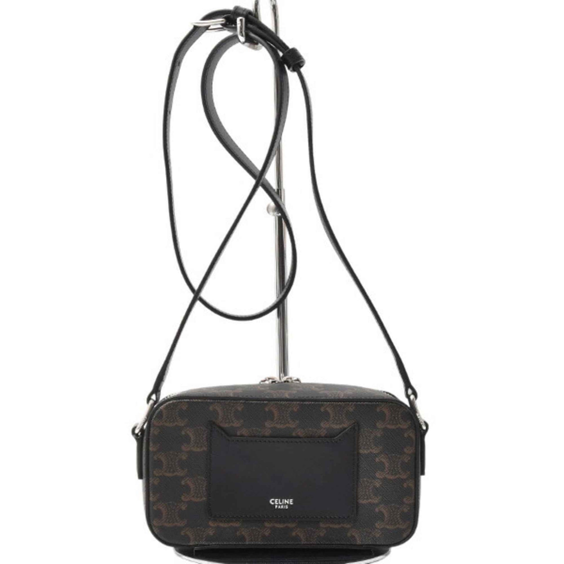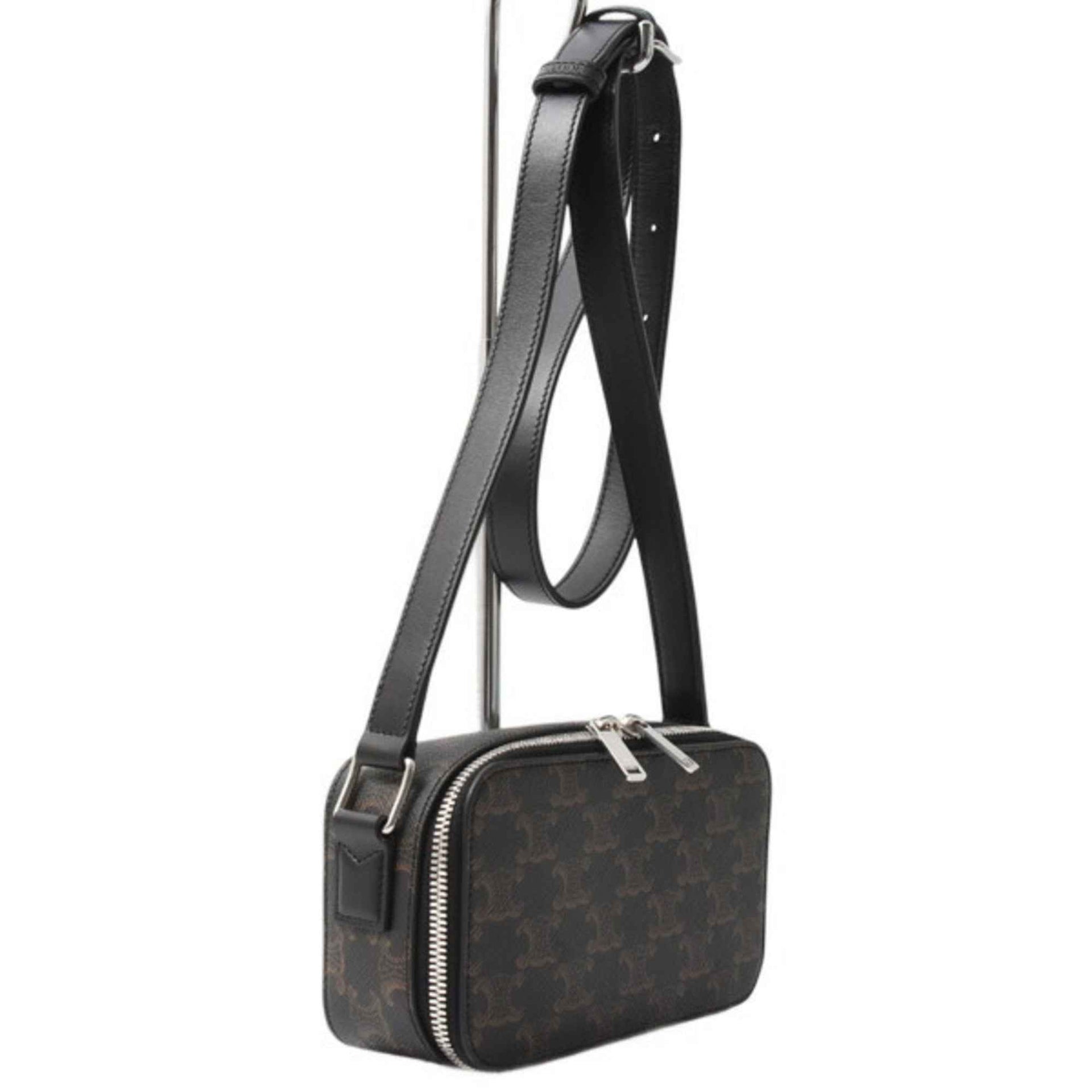 Celine Unisex Mini Box Shoulder Bag in Triomphe Canvas and Calfskin, Black, CELINE 114902EVJ