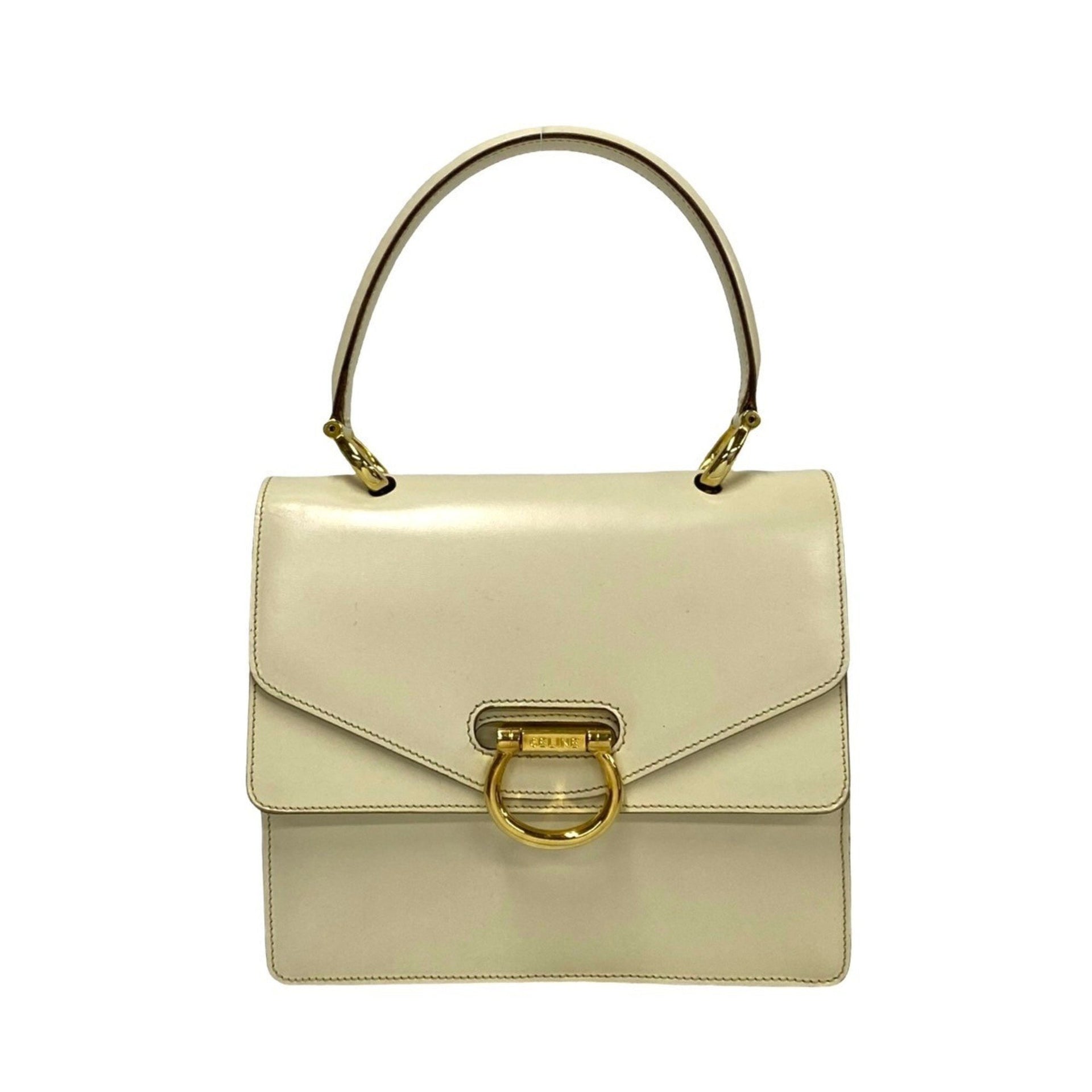 CELINE Vintage Gancini Logo Hardware Leather Handbag/Mini Tote Bag, Ivory, 48380