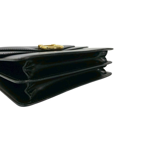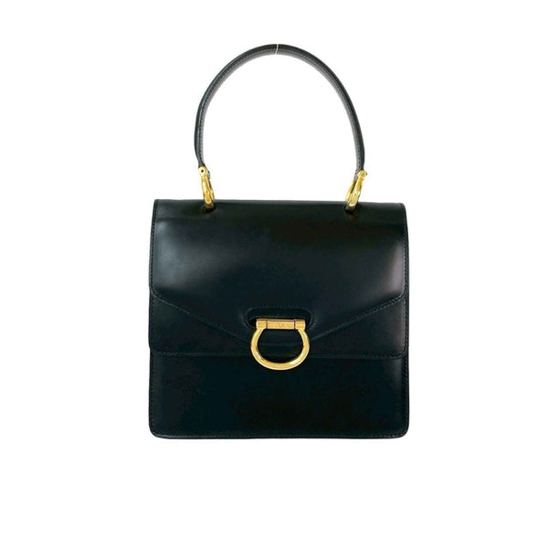 CELINE Vintage Logo Hardware Calf Leather Handbag Mini Tote Bag Black 415-8