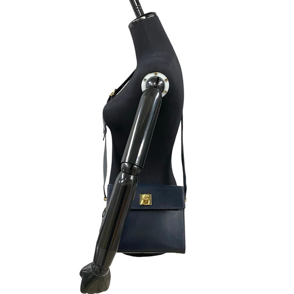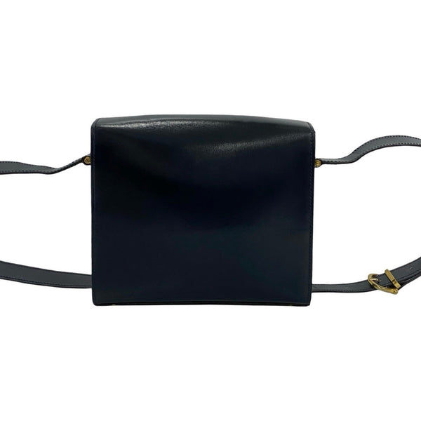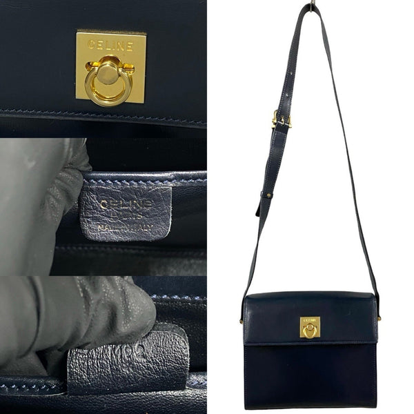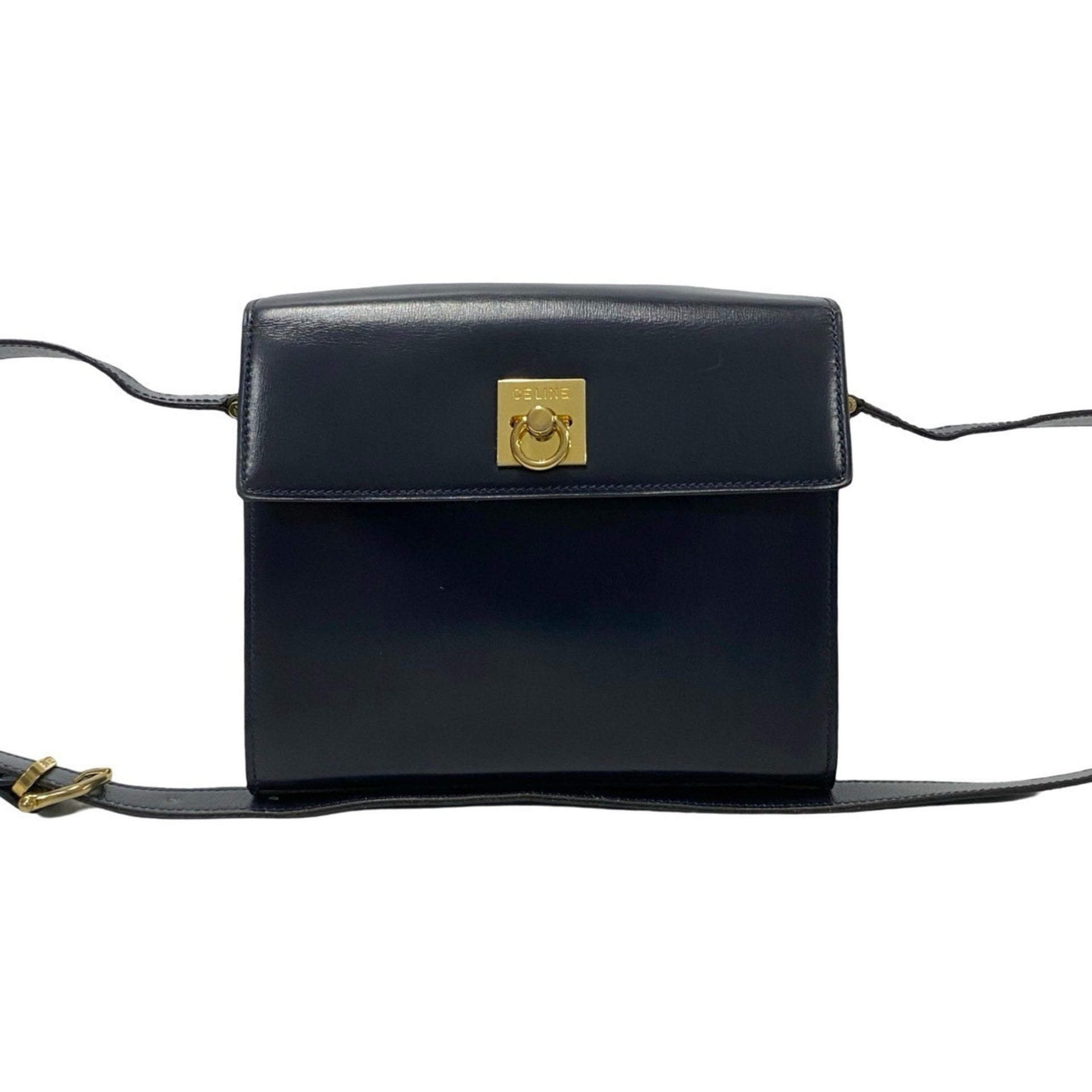 CELINE Vintage Logo Ring Hardware Leather Shoulder Bag Pochette Sacoche Navy 94235