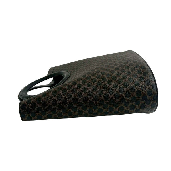CELINE Vintage Macadam Blason Pattern Circle Logo Leather Handbag Tote Bag Black 28961