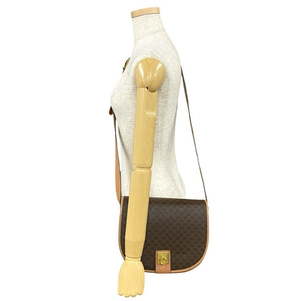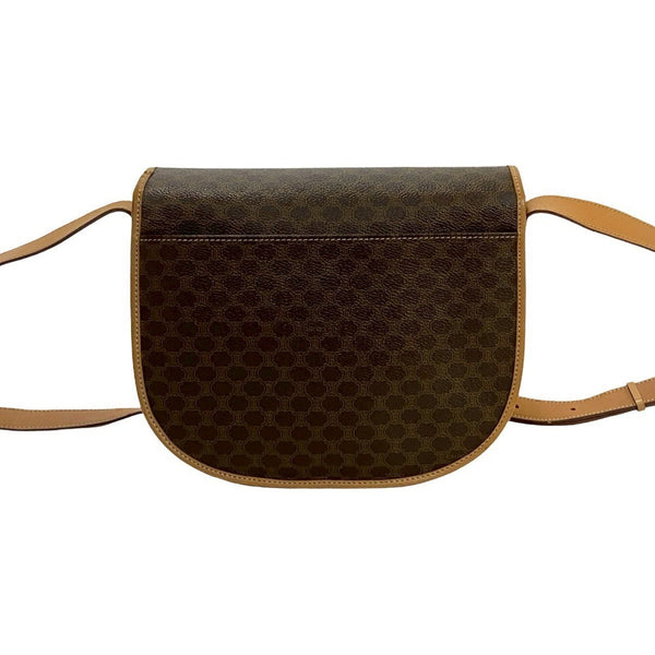 CELINE Vintage Macadam Blason Triomphe Print Leather Shoulder Bag with Ring Hardware, Brown, 90310