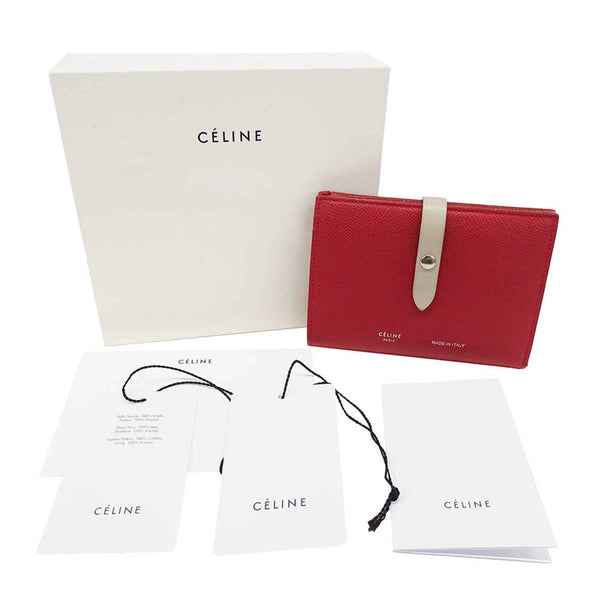 Celine Women\'s Leather Bi-fold Wallet with Medium Strap, Multi-Function, Red