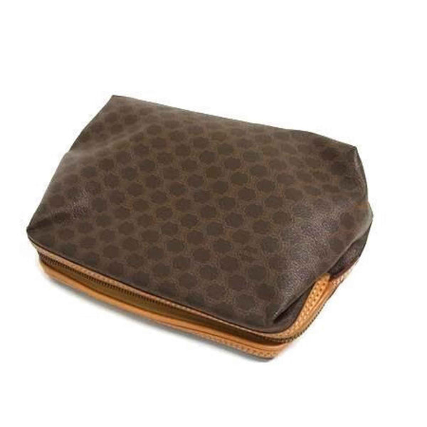 CELINE Women\'s Macadam Pattern Clutch Bag - Brown Leather