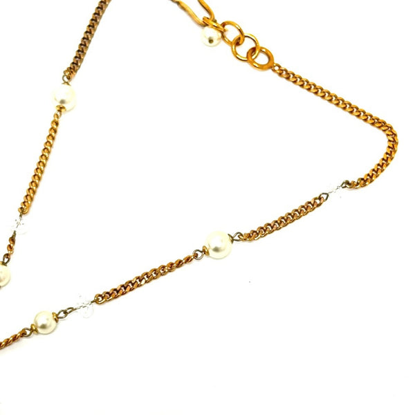CHANEL 05P Coco Mark Fake Pearl Chain Necklace Metal Women\'s Gold