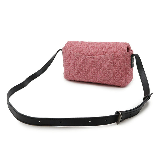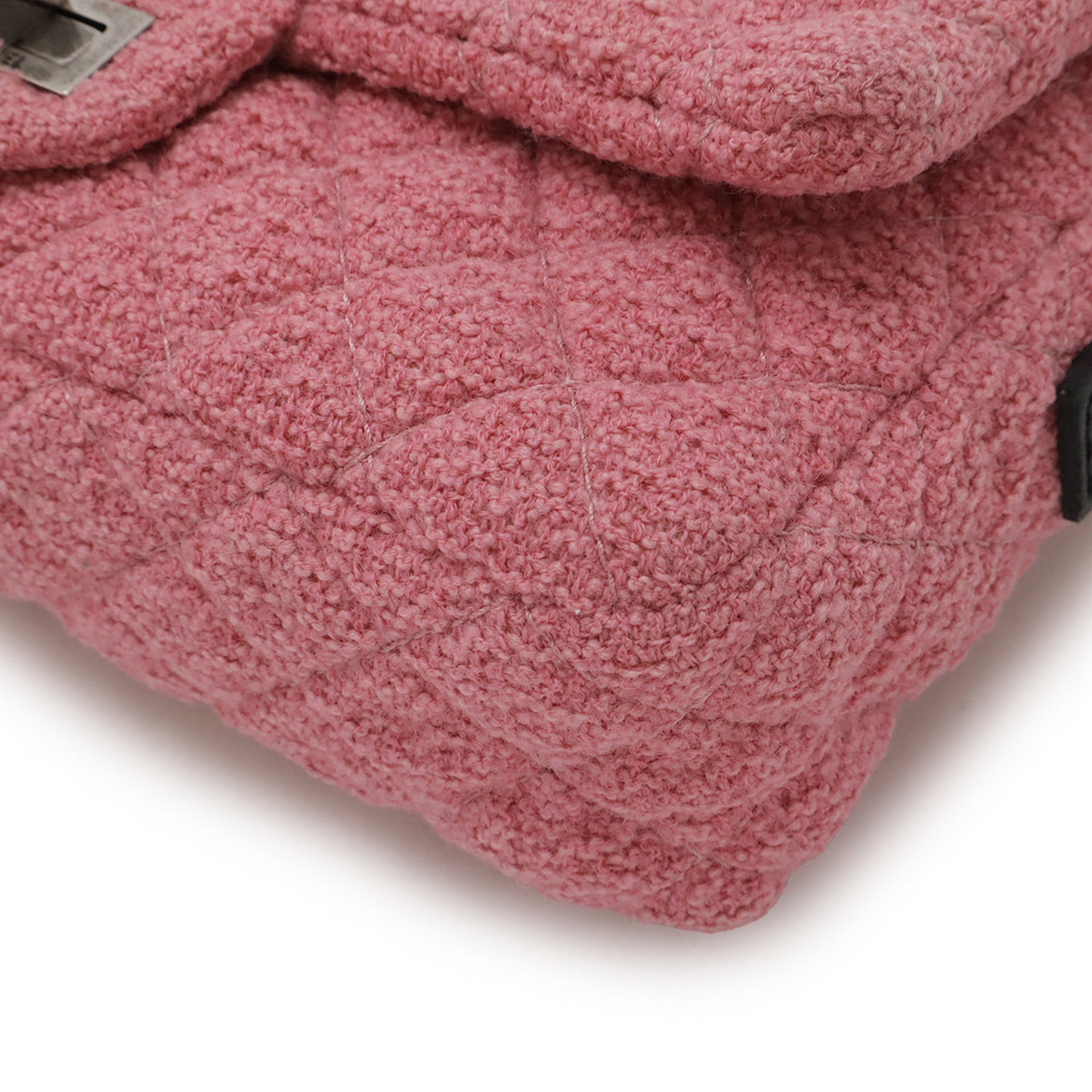 CHANEL 2.55 Matelasse Shoulder Bag Quilted Tweed Pink 7691