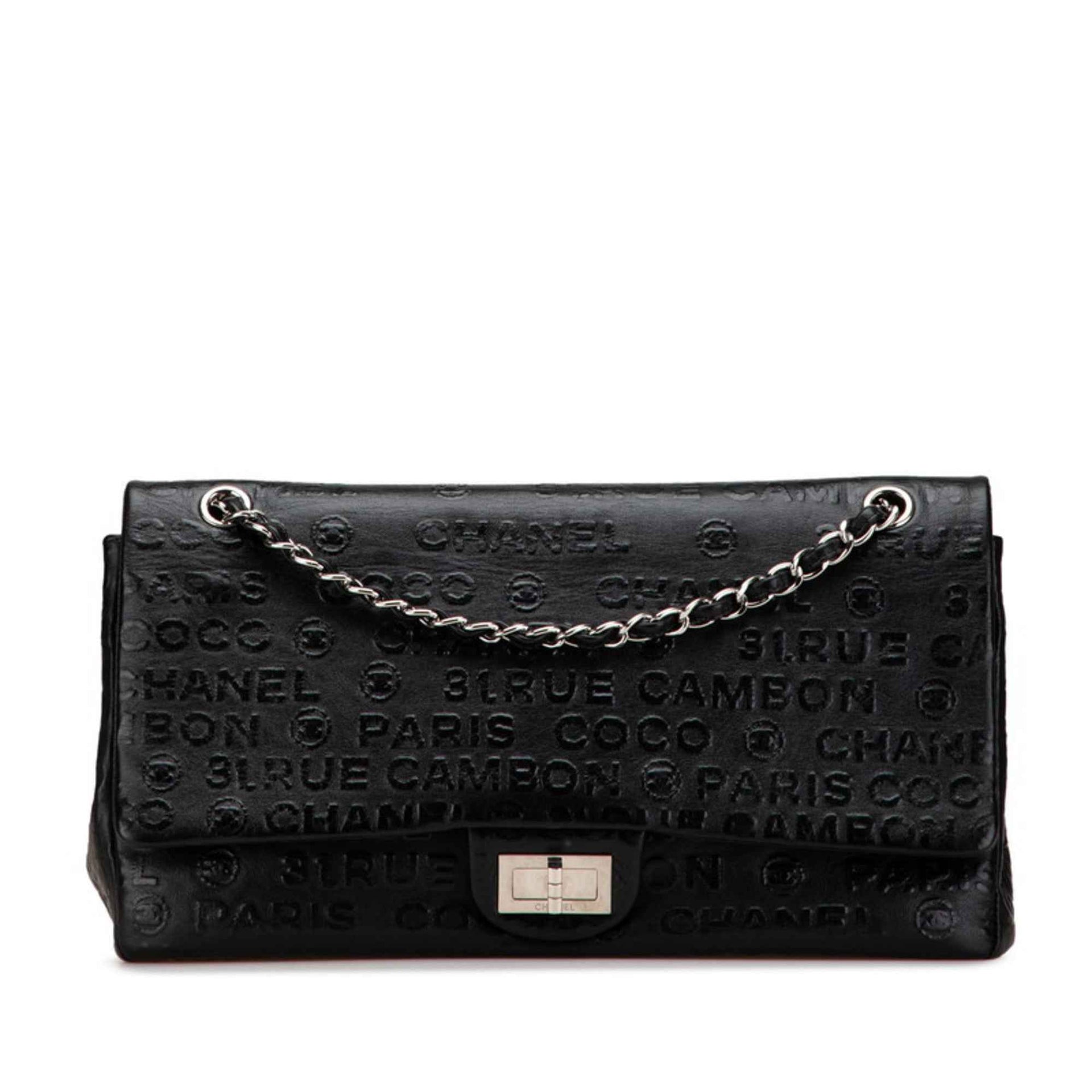 CHANEL 2.55 Unlimited Double Flap Chain Shoulder Bag Handbag Black Leather Women\'s