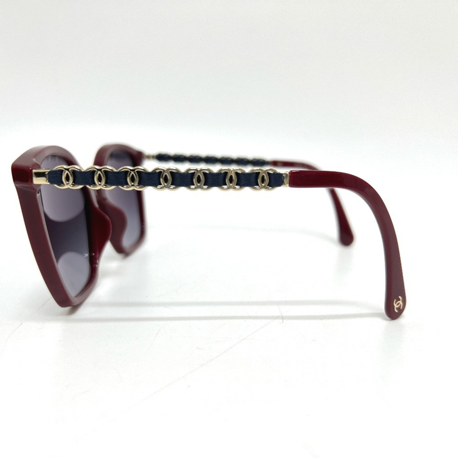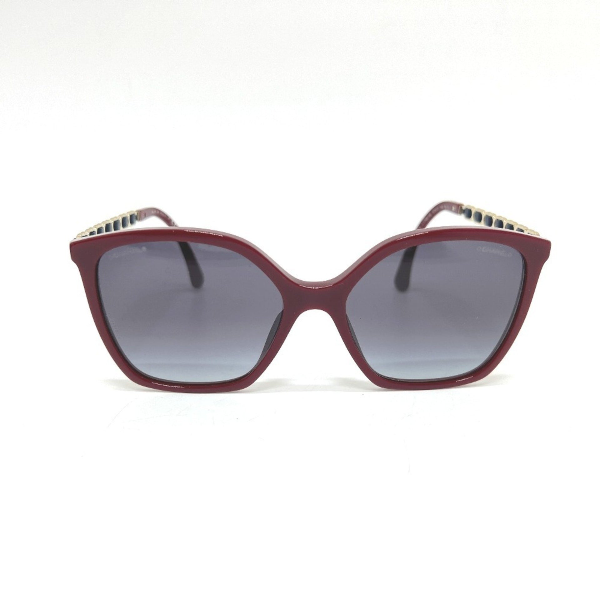 CHANEL 5546-Q-A Coco Mark Chain Square Shape Calfskin Sunglasses, Plastic, Women\'s, Red