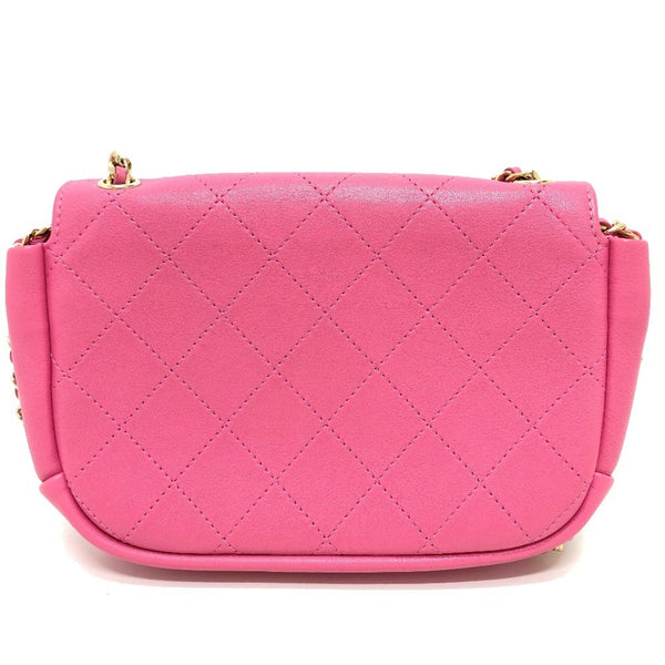 CHANEL AS0138 CC Coco Mark Edge Chain Bag, Shoulder Calfskin, Women\'s, Pink