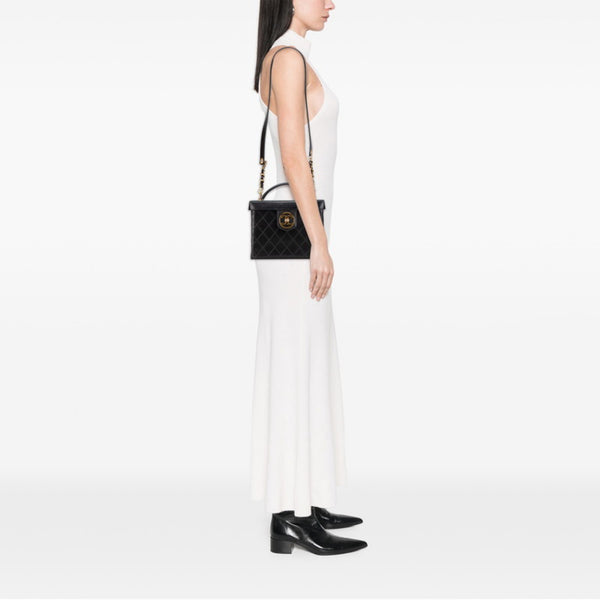 CHANEL Bicolor Coco Mark Vanity Bag Shoulder 2-Way Black Leather Women\'s