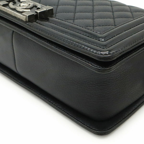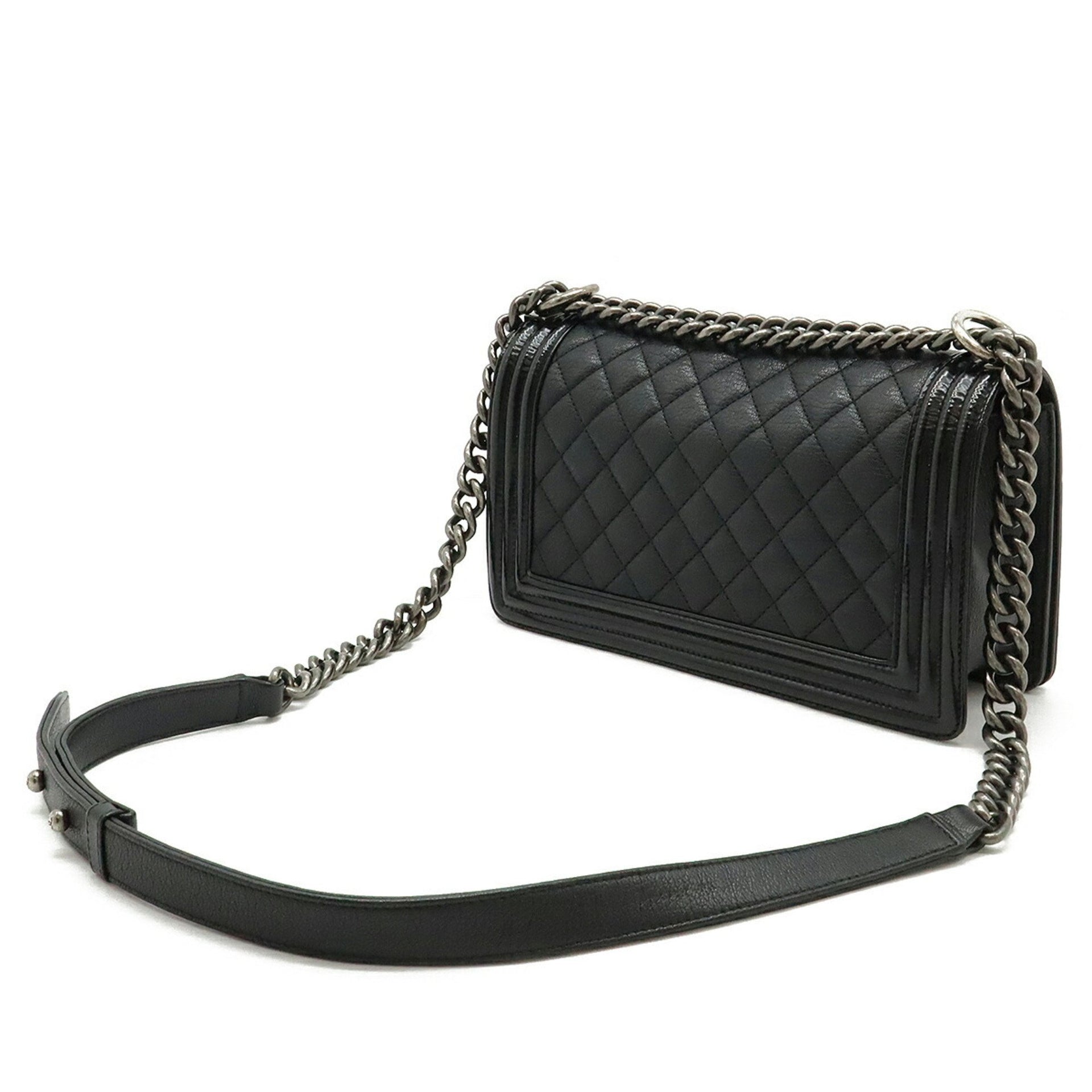 CHANEL Boy Chanel 25 Coco Mark Chain Shoulder Bag Leather Enamel Black A67086