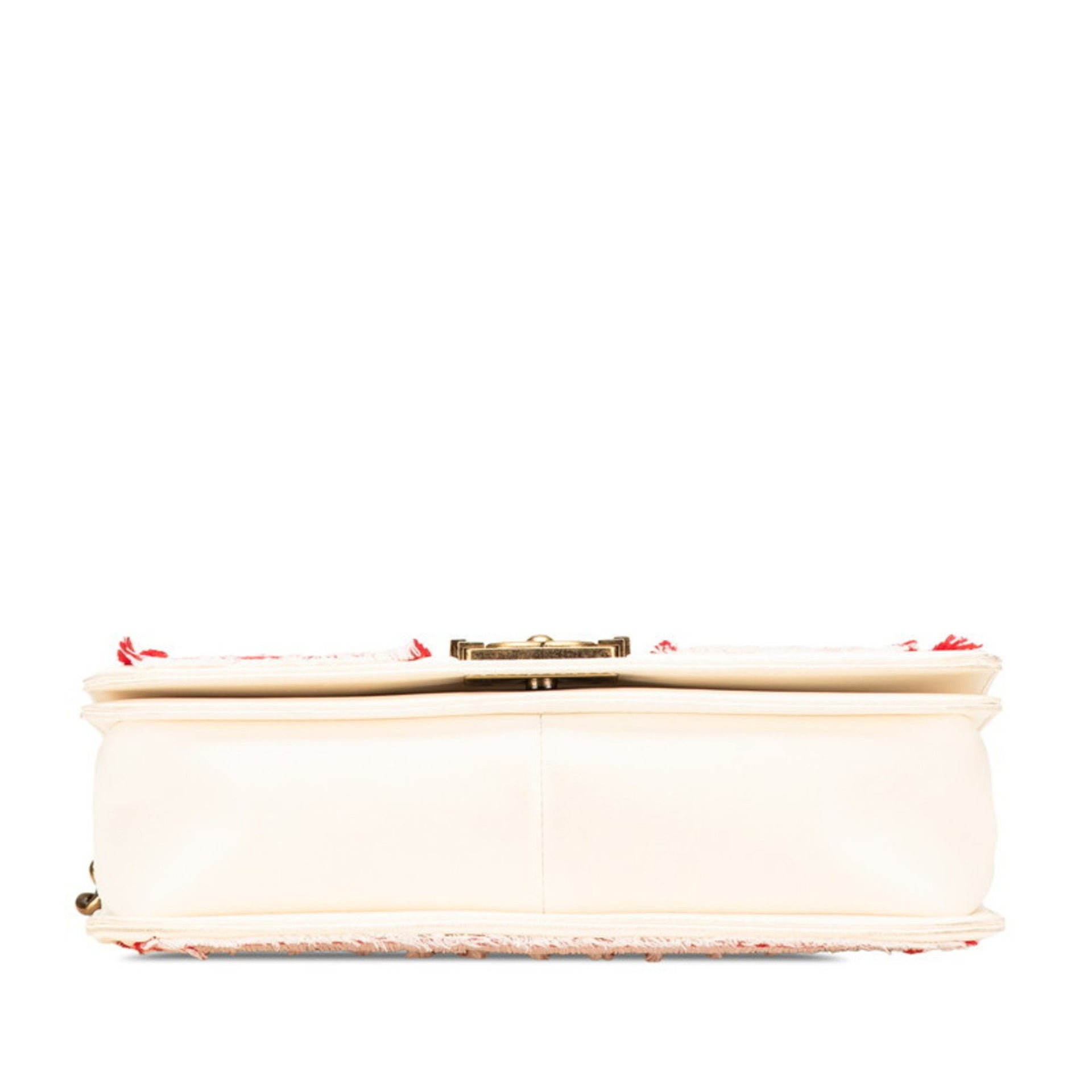 CHANEL Boy Chanel Coco Mark CUBA Chain Shoulder Bag in White, Red, and Multicolored Lambskin Sequin Canvas. Women\'s.