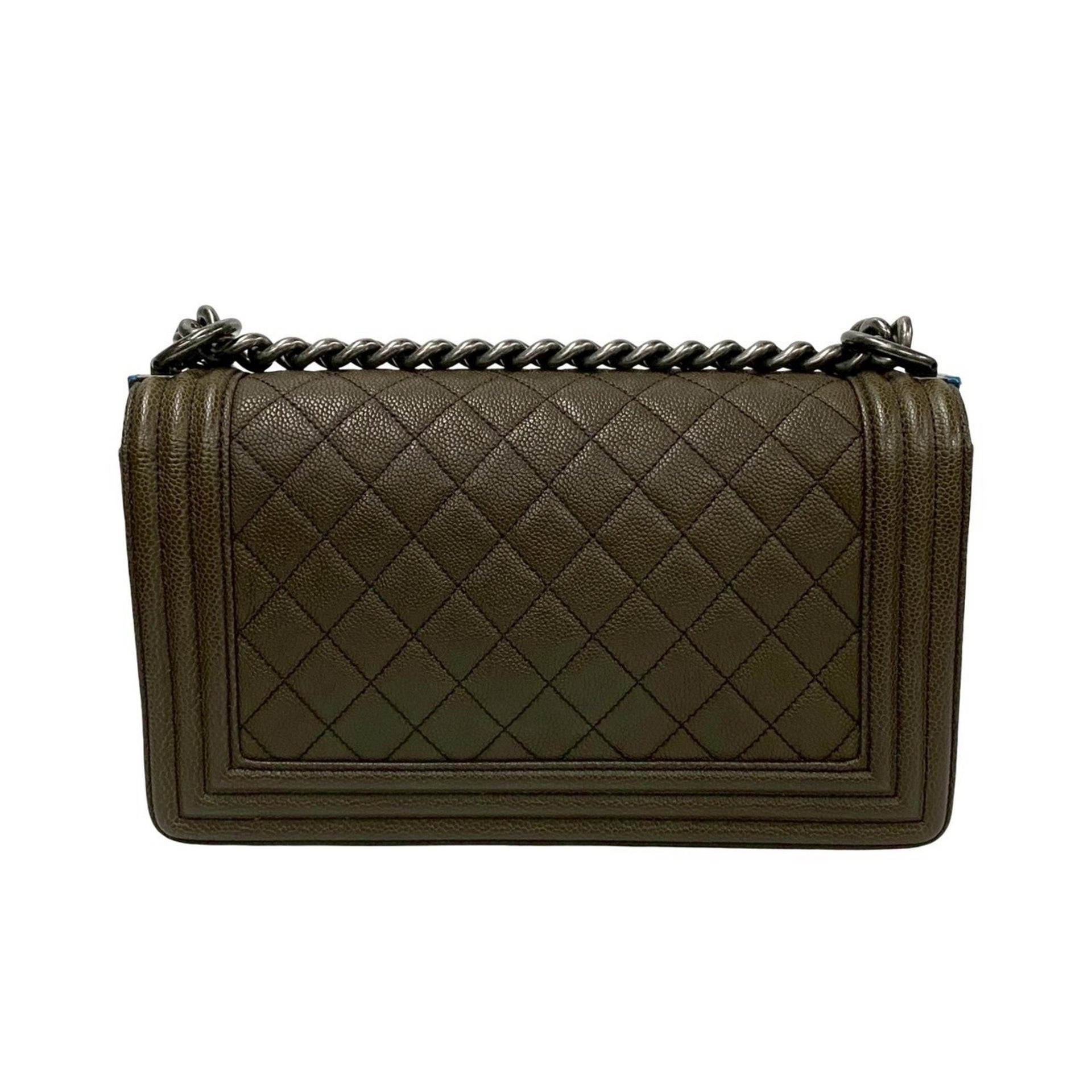 CHANEL Boy Chanel Coco Mark Leather Chain Shoulder Bag, Khaki 38130
