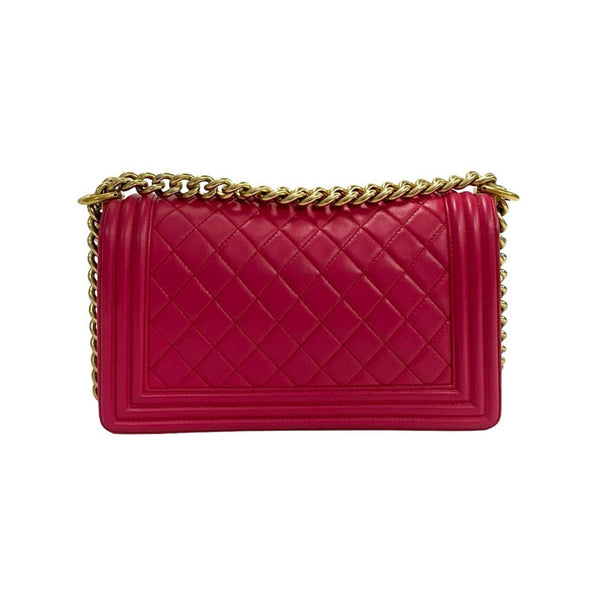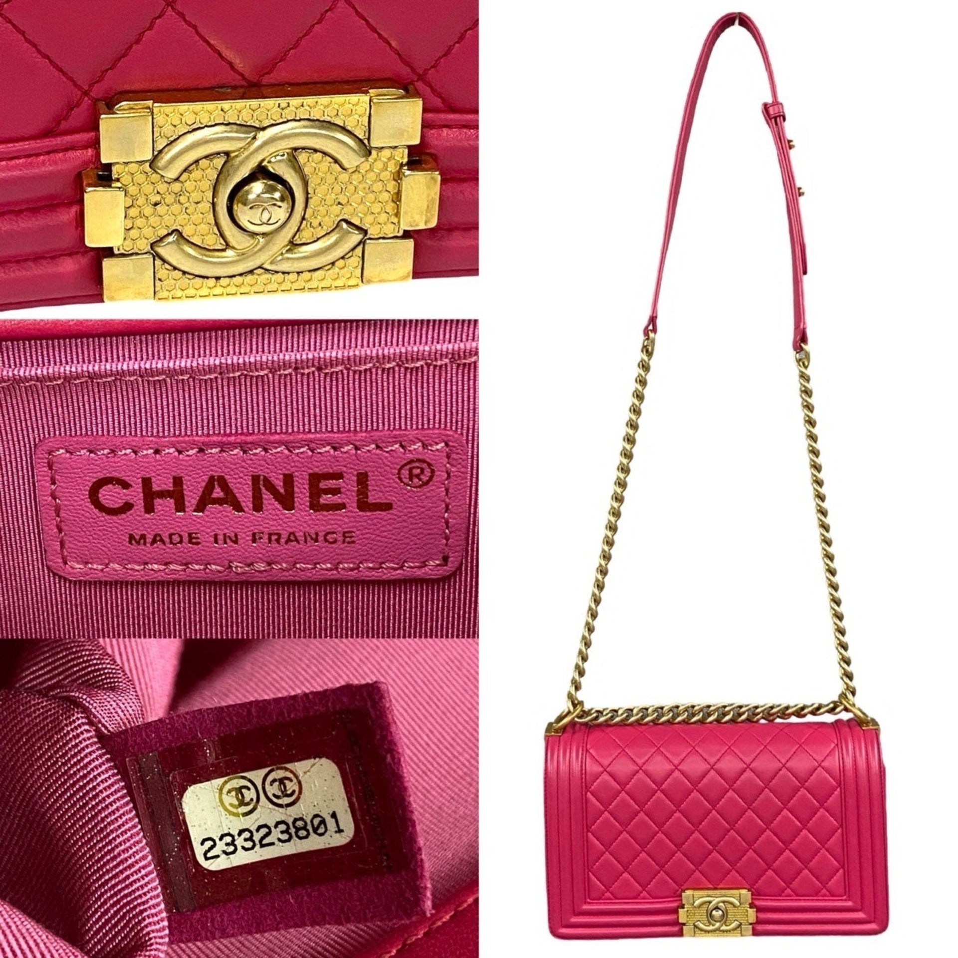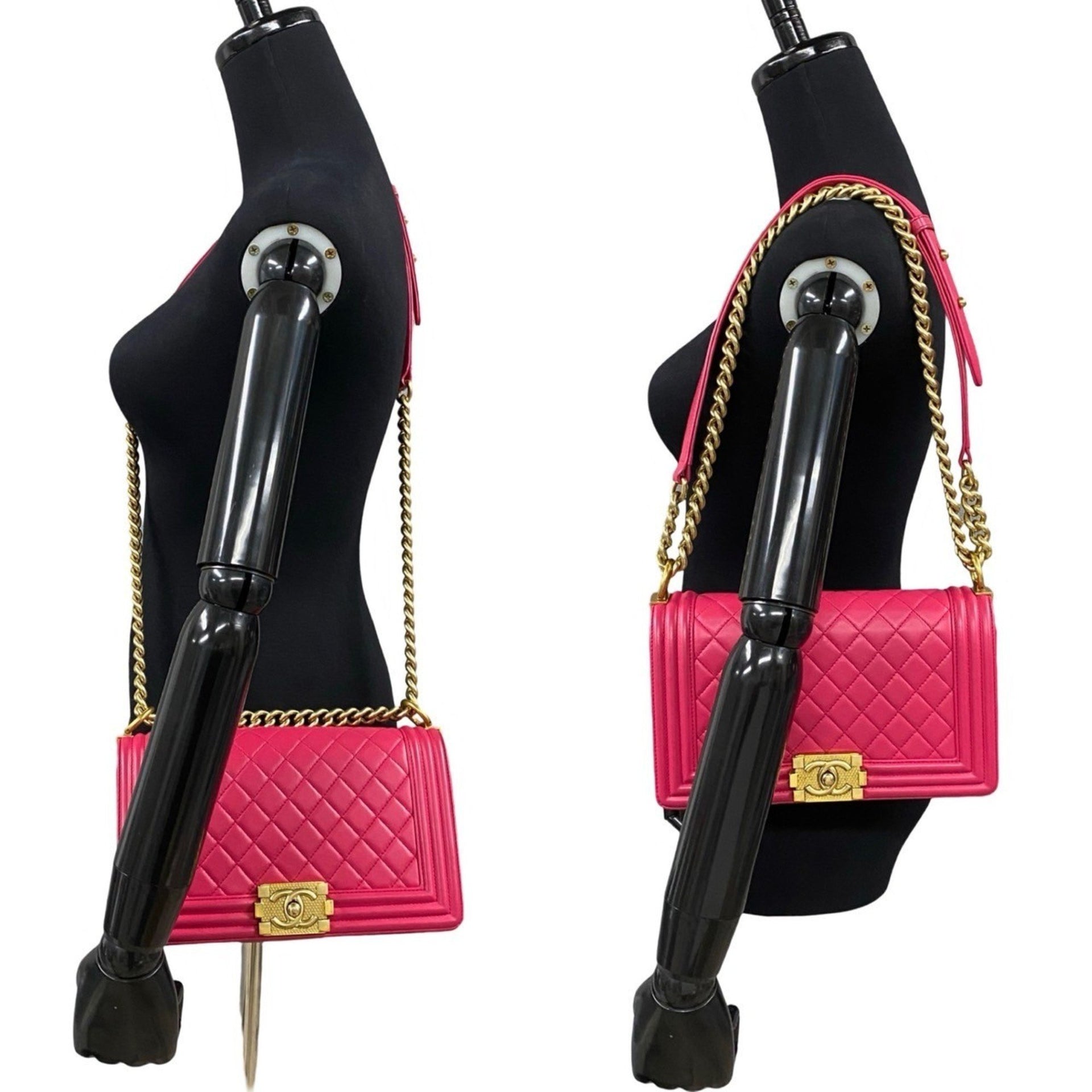 CHANEL Boy Chanel Lambskin Chain Shoulder Bag Pochette Pink 22948