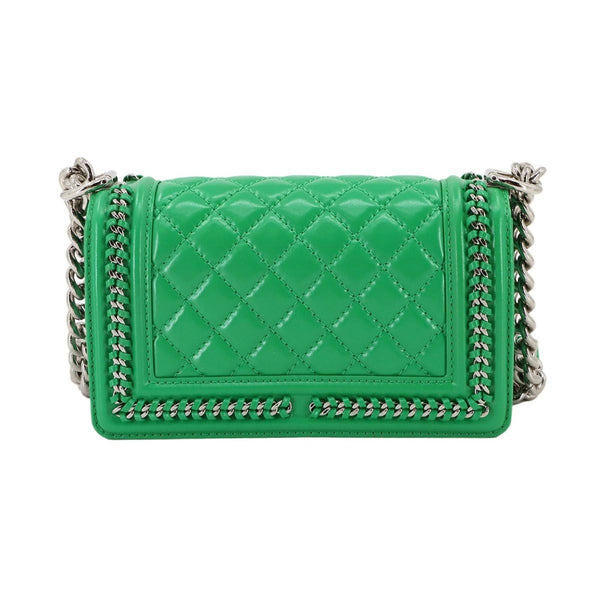 CHANEL Boy Chanel Small Chain Shoulder Bag in Green Leather with Silver Hardware (A67085)
