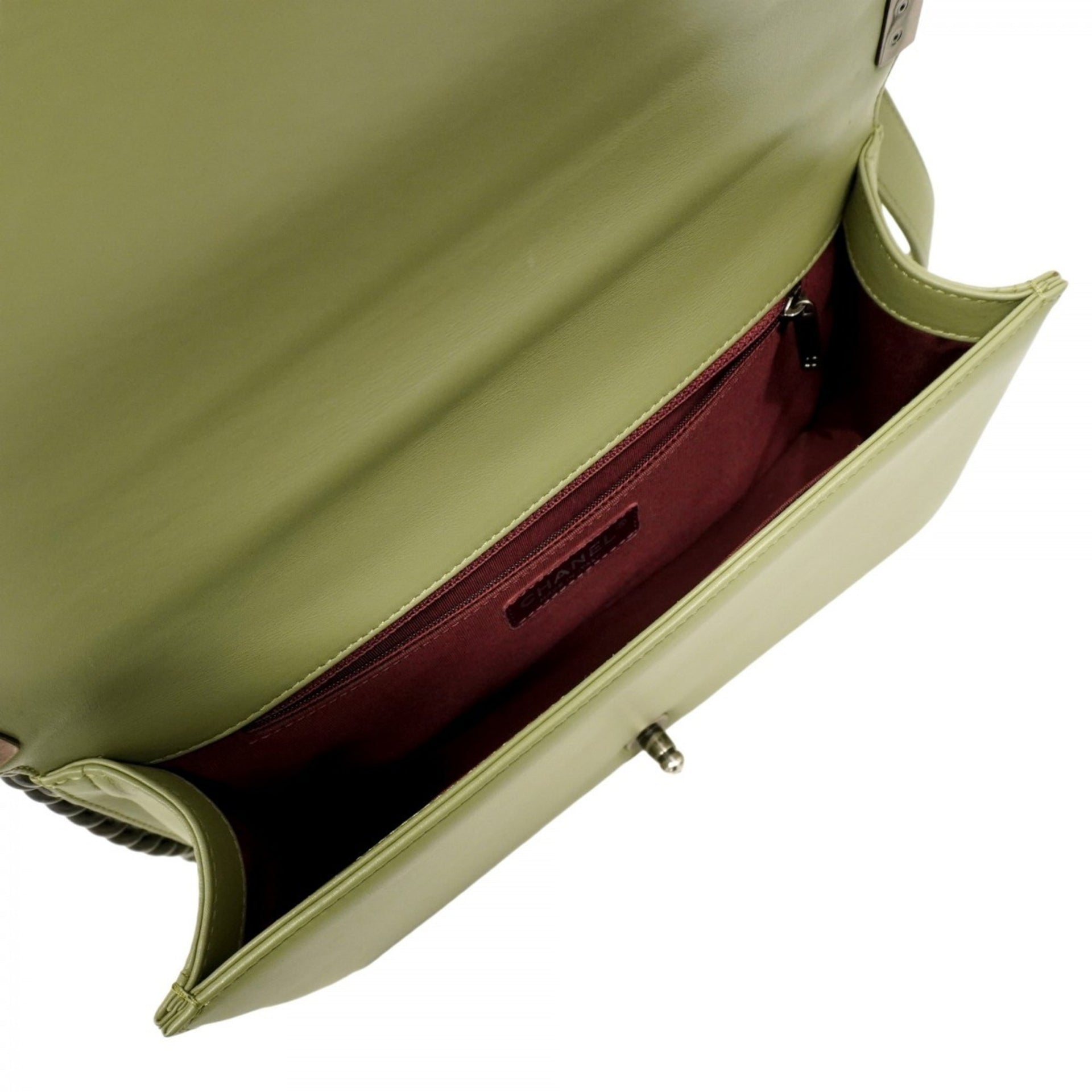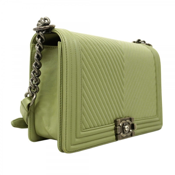 Chanel Boy Shoulder Bag, V-Stitch Chain Lambskin, Green, Women\'s