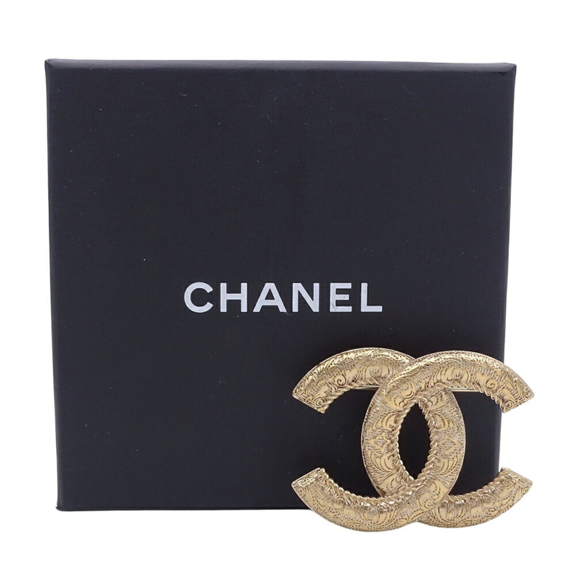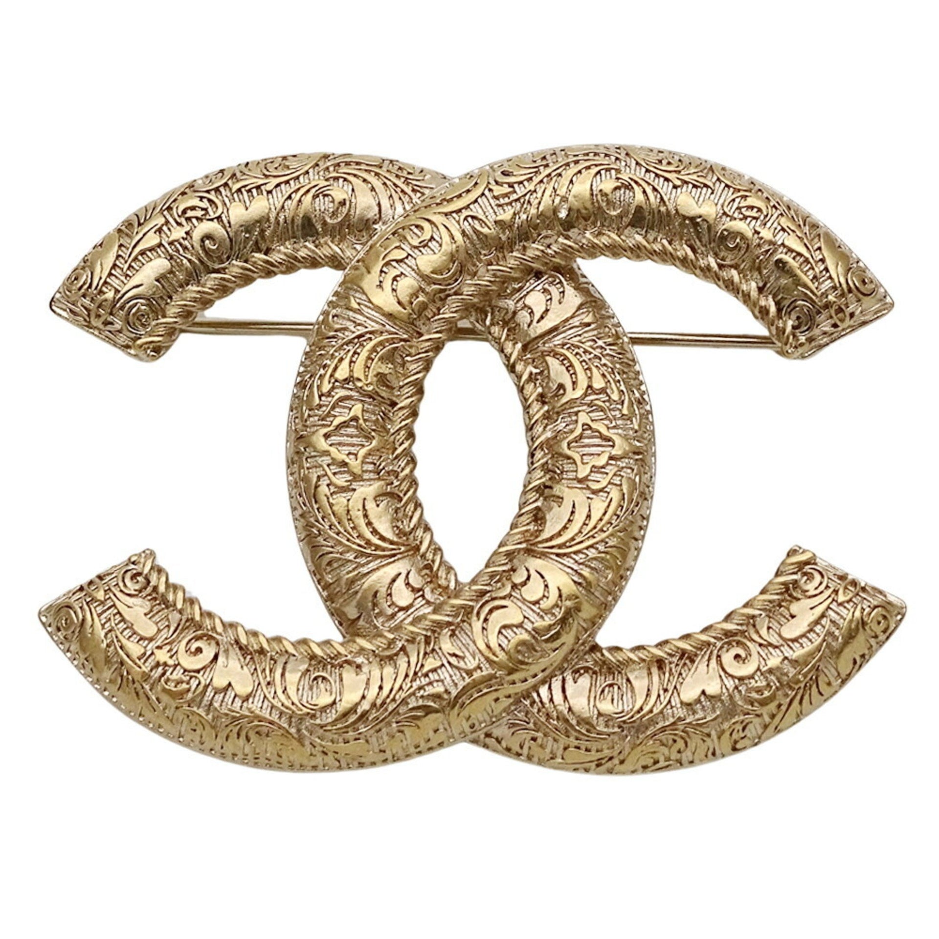 CHANEL Brooch Coco Carving Women\'s Metal Gold Champagne Mark