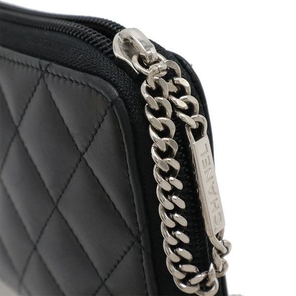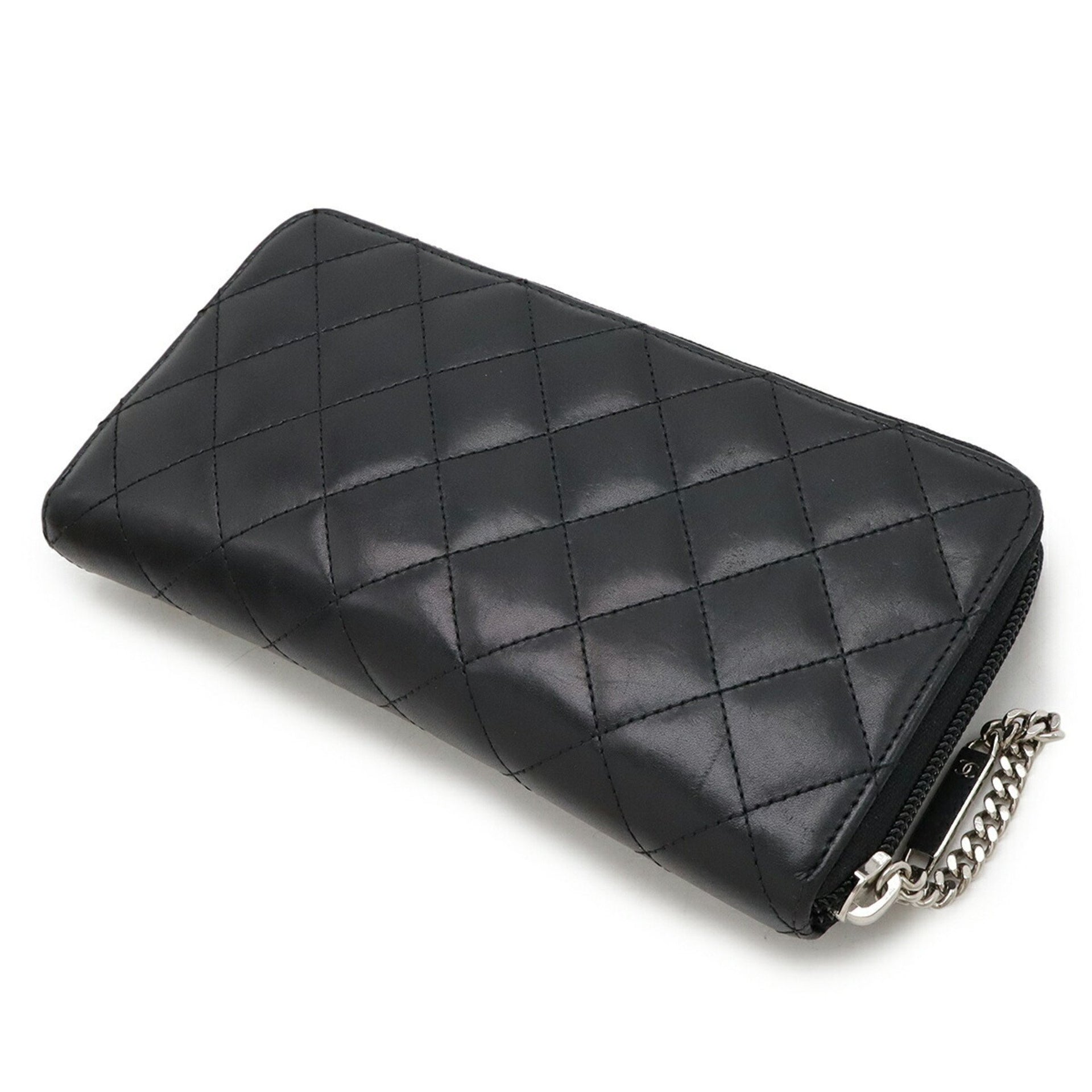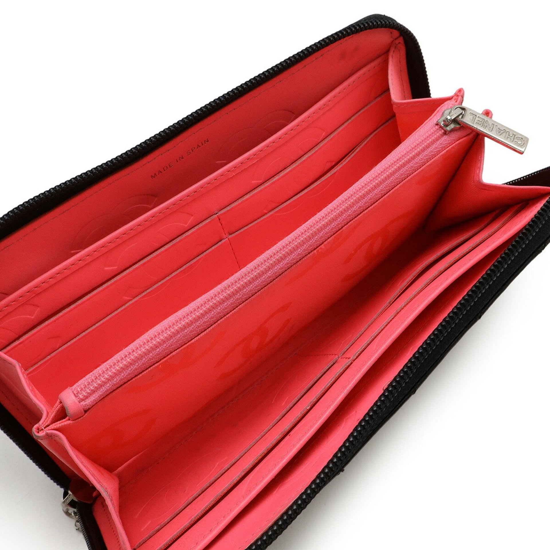 CHANEL Cambon Line Coco Mark Round Long Wallet Soft Calf Leather Patent Black Pink A50078