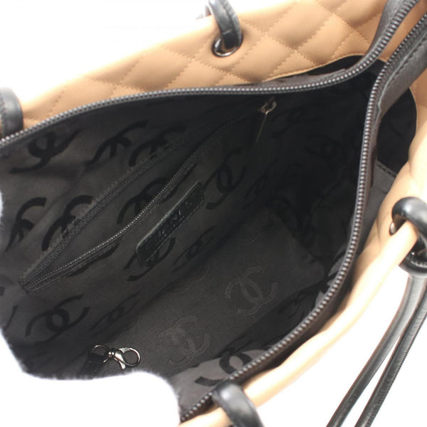 CHANEL Cambon Line Medium Tote Bag Leather Women\'s Beige Black A25167