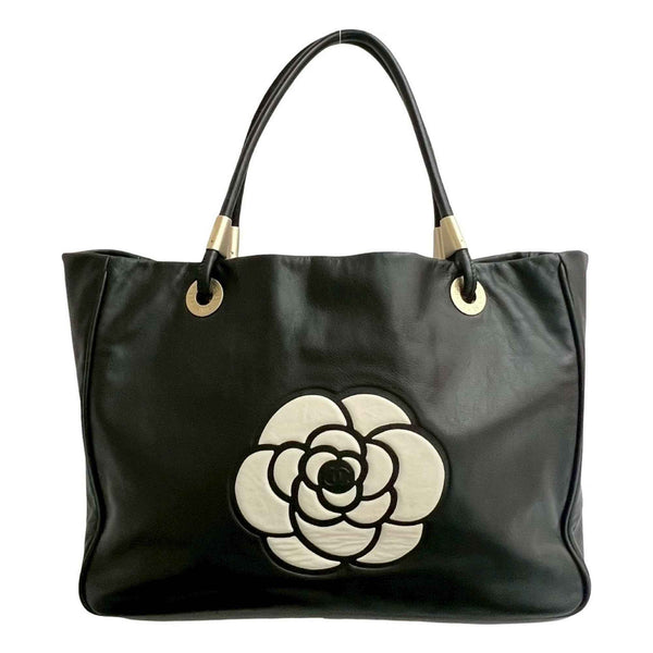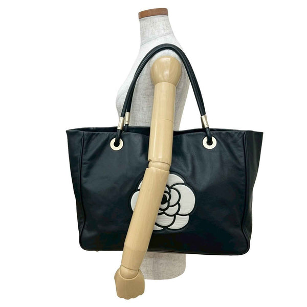 CHANEL Camellia Coco Mark Logo Hardware Leather Tote Bag/Semi-Shoulder Bag Black 706-8
