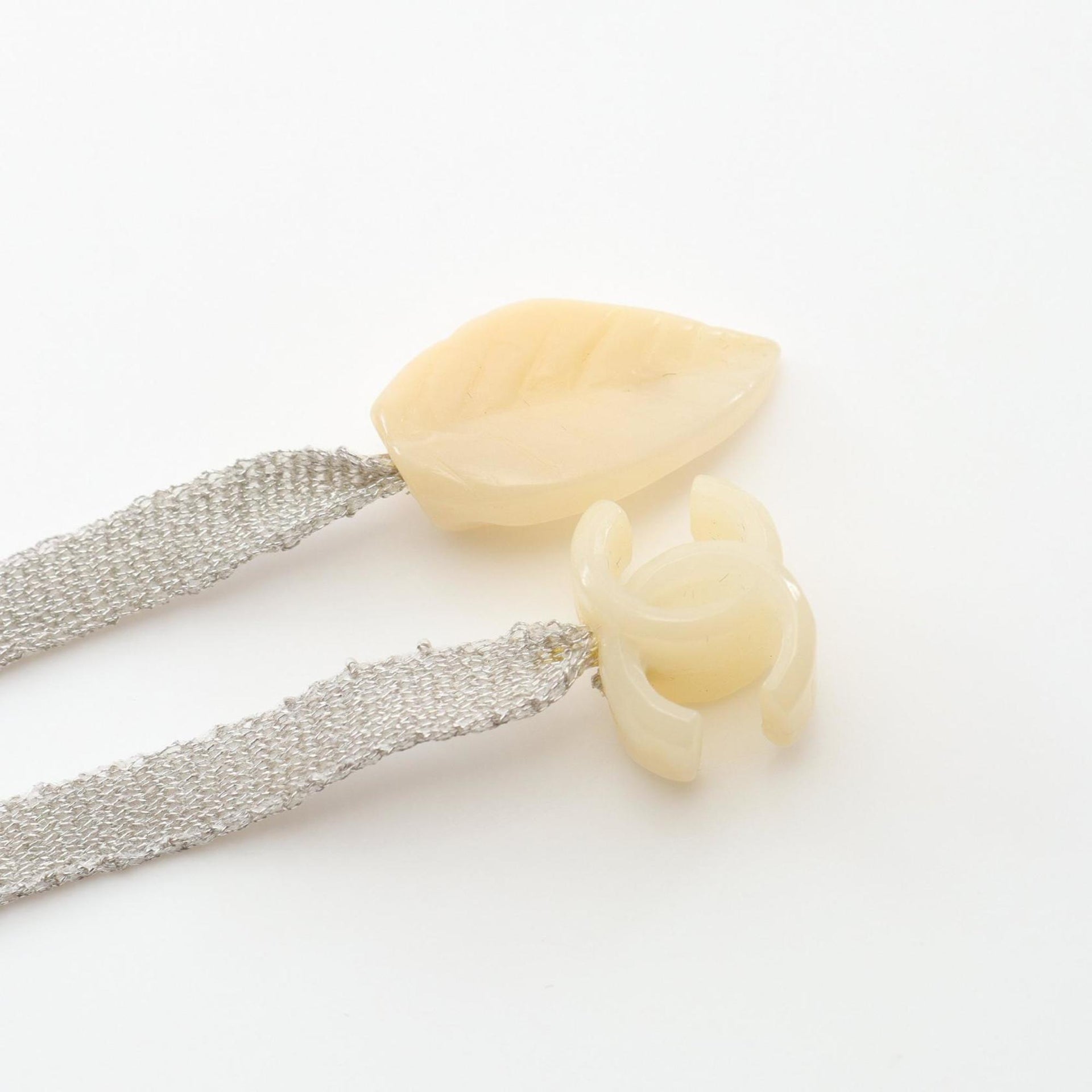 CHANEL Camellia Coco Mark Necklace, Plastic, Women\'s, White and Silver