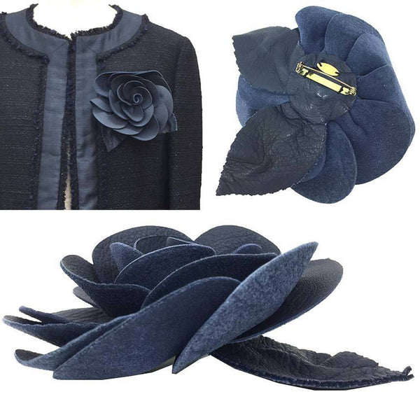 CHANEL Camellia Corsage Brooch in Navy Leather for Women
